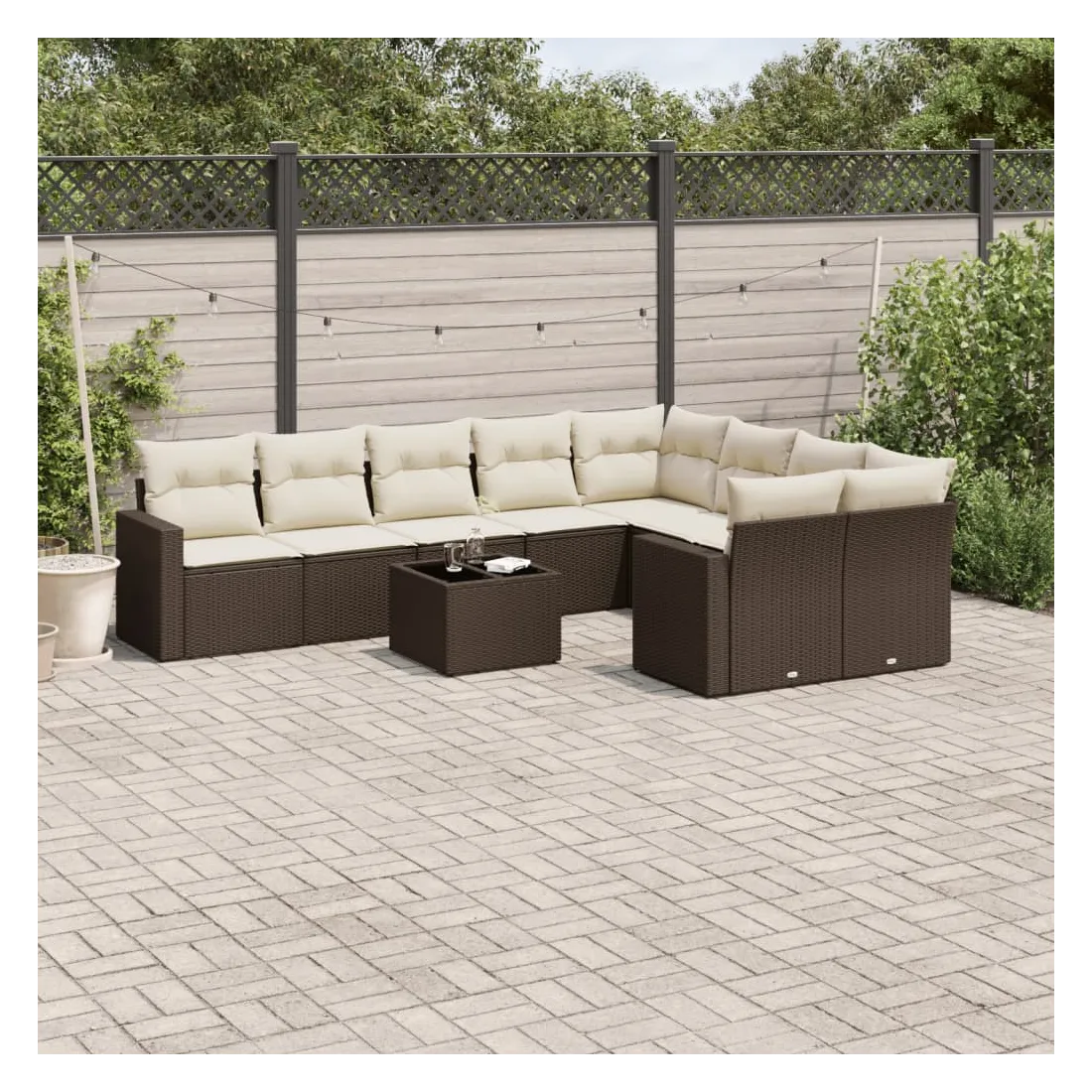 Cet ensemble de canapés de jardin est le complément parfait de votre arrière-cour, terrasse ou patio, offrant un espace confortable et accueillant pour discuter avec la famille et les amis ou simplement se détendre et profiter de l'extérieur. Matériau durable : la résine tressée, également connue sous le nom de poly rotin, est un matériau synthétique solide et nécessitant peu d'entretien qui ressemble au rotin naturel. Il est léger, facile à nettoyer et couramment utilisé pour les meubles d'extérieur en raison de sa durabilité et de ses propriétés de résistance aux intempéries.Fonction de rangement avec sac résistant à l'eau : chaque siège de jardin dispose d'un espace de rangement sous l'assise, complété par un sac résistant à l'eau pour ranger les coussins, les jouets et d'autres objets. Les sacs intérieurs sont dotés d'un couvercle et peuvent être solidement fixés aux sièges à l'aide de bandes auto-agrippantes pour plus de stabilité.Dessus en verre : le dessus de la table d'extérieur est fabriqué en verre trempé solide et durable, ce qui le rend facile à nettoyer avec un chiffon humide et ajoute une touche d'élégance à votre espace extérieur.Housse amovible et lavable : ces coussins de siège sont dotés de housses amovibles pour un lavage et un entretien faciles.Conception modulaire : cet ensemble de meubles d'extérieur a une conception modulaire, ce qui le rend complètement flexible et facile à déplacer, afin que vous puissiez créer un agencement de meubles d'extérieur personnalisé. Bon à savoir :Pour que vos meubles d'extérieur restent beaux, nous vous recommandons de les protéger avec une housse imperméable.