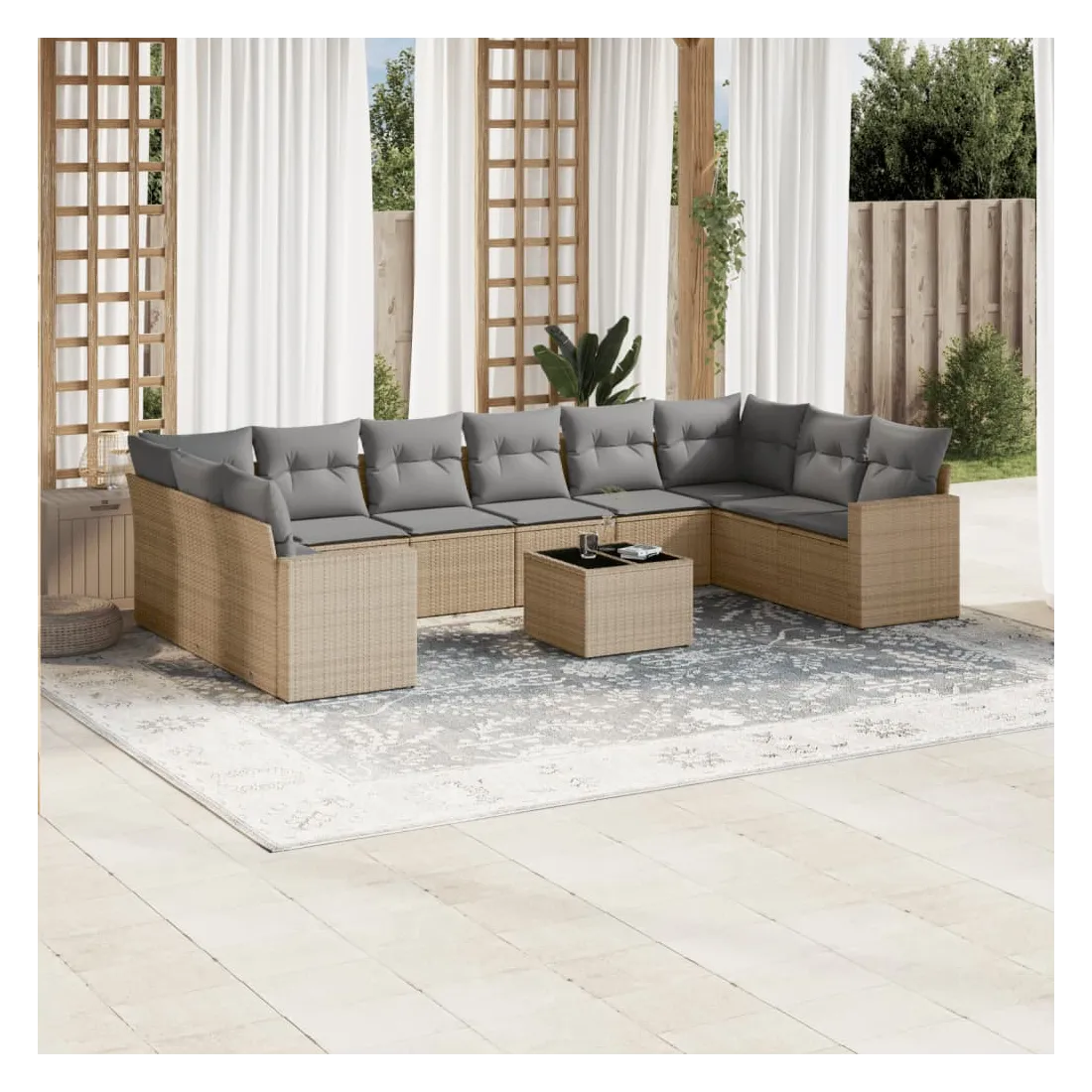 Salon de jardin 11 pcs avec coussins beige résine tressée