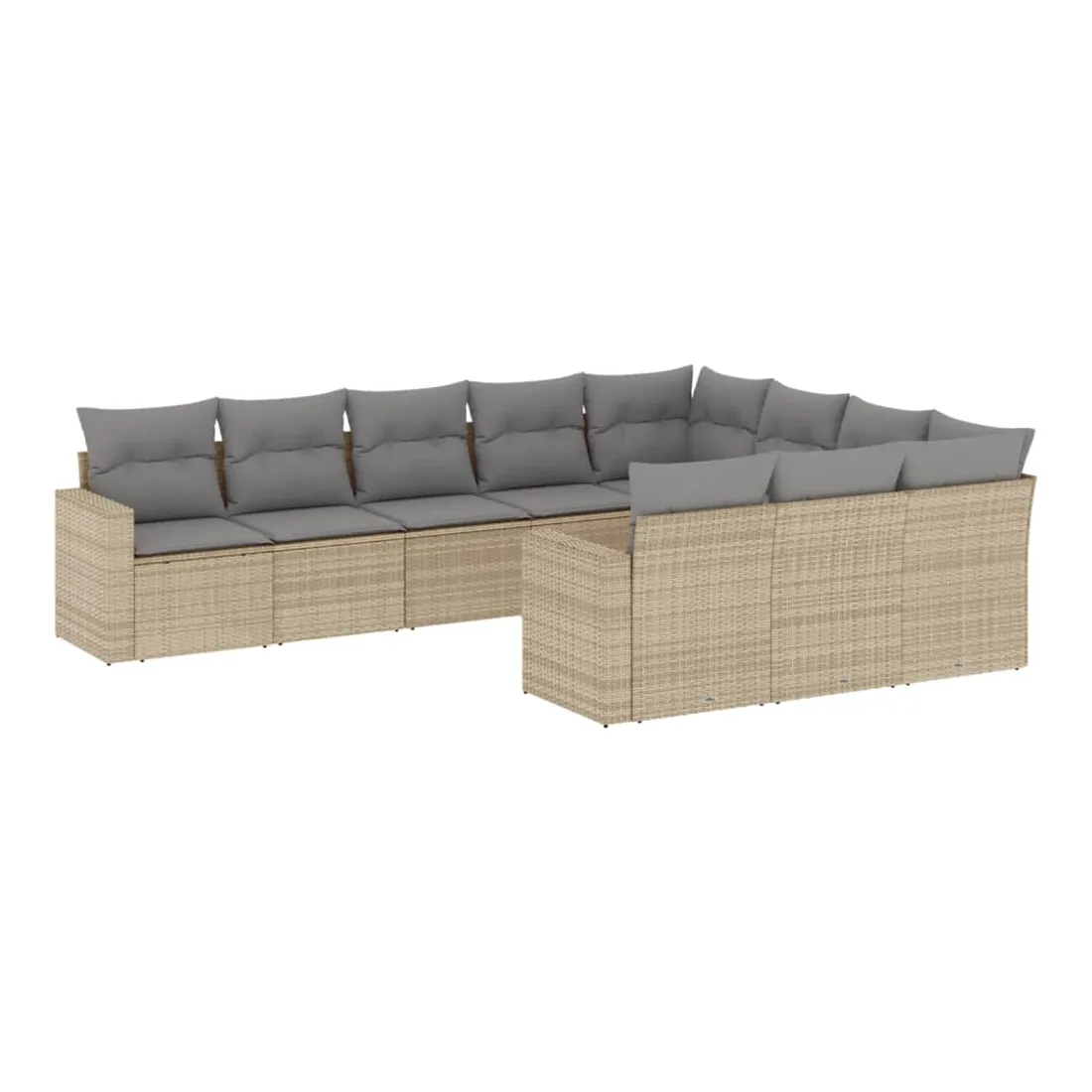 Salon de jardin avec coussins 10 pcs beige résine tressée