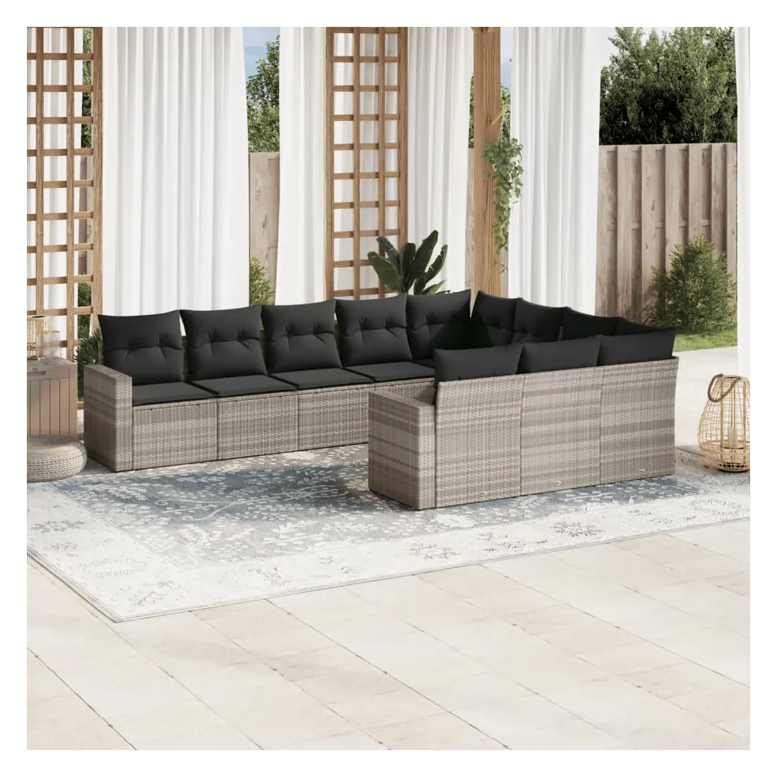 Salon de jardin avec coussins 10 pcs gris clair résine tressée