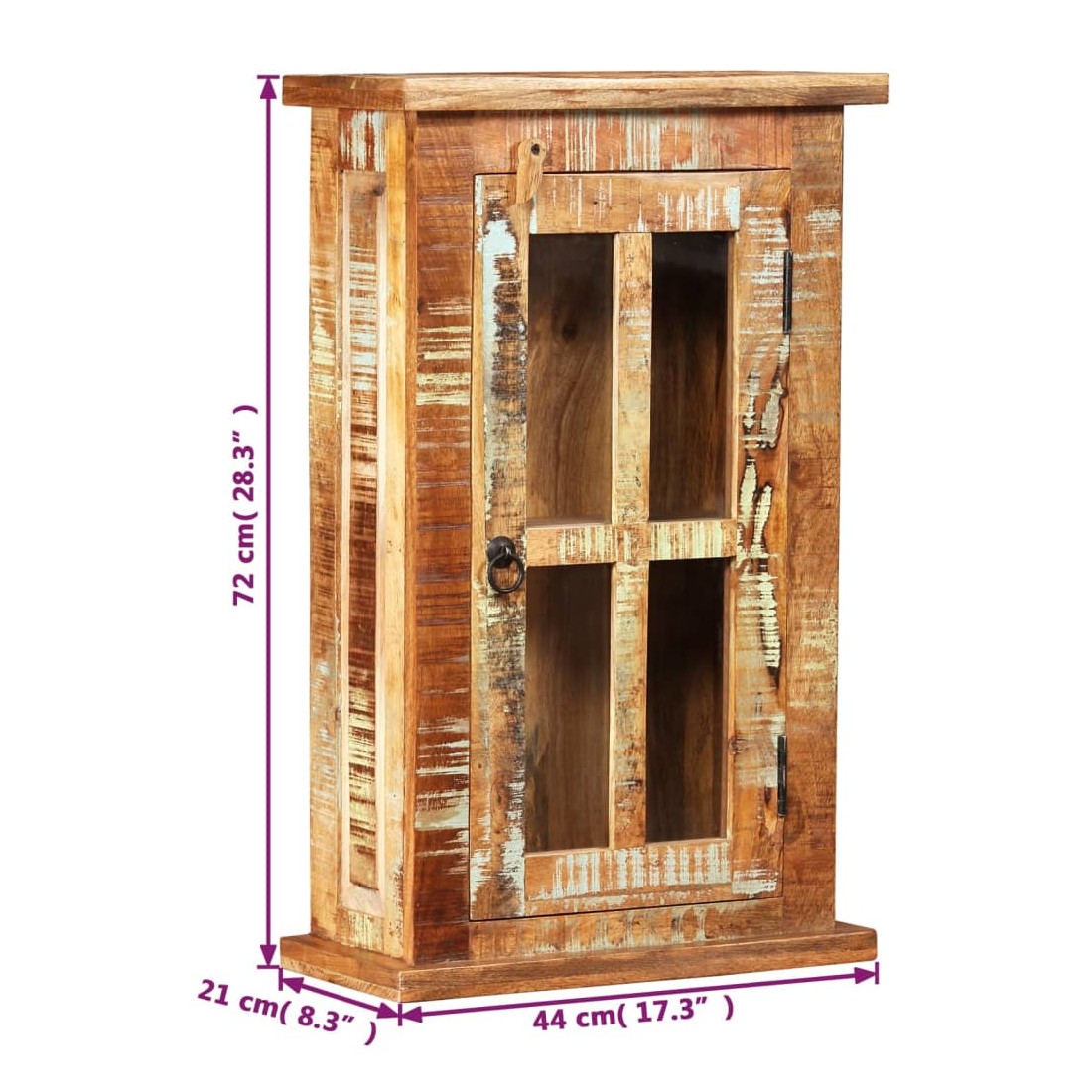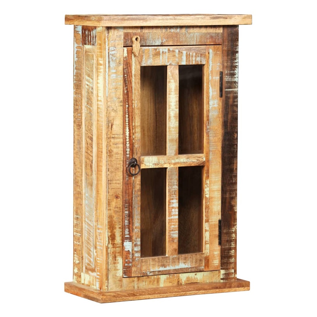 Cette armoire murale en bois recyclé avec un grand compartiment est parfaite pour la cuisine ou la salle de bain. Cette armoire en bois est fabriquée en bois de récupération massif, ce qui signifie qu'elle a les caractéristiques de différents bois comme l'acajou, le teck, le bois dur, le manguier, l'acacia, etc. Le bois de récupération est solide, stable, durable et beau. Des signes d'usure donnent à chaque pièce un aspect unique et ajoutent à son style vintage spectaculaire. Chaque étape du processus de construction est réalisée avec le plus grand soin, qu'il s'agisse de recombinaison, de polissage, de peinture ou de laquage. Cet article est déjà assemblé ; aucun assemblage n'est requis. Remarque importante : La couleur et les grains de bois peuvent varier d'une pièce à l'autre, ce qu