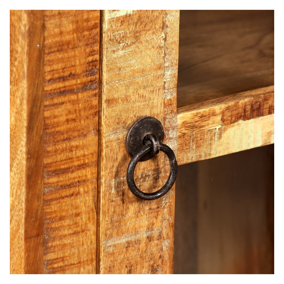 • Matériau : bois de récupération massif + verre