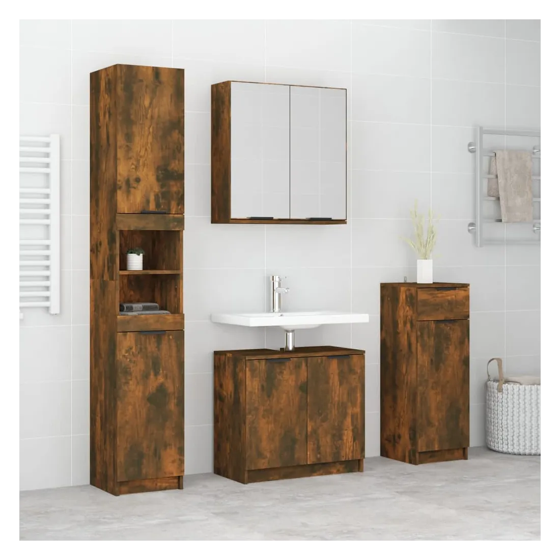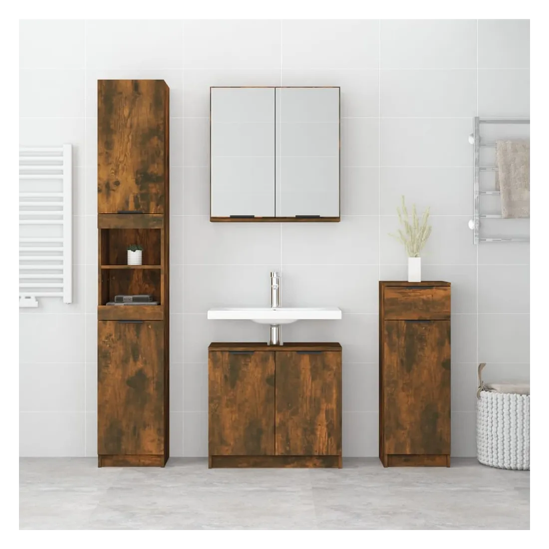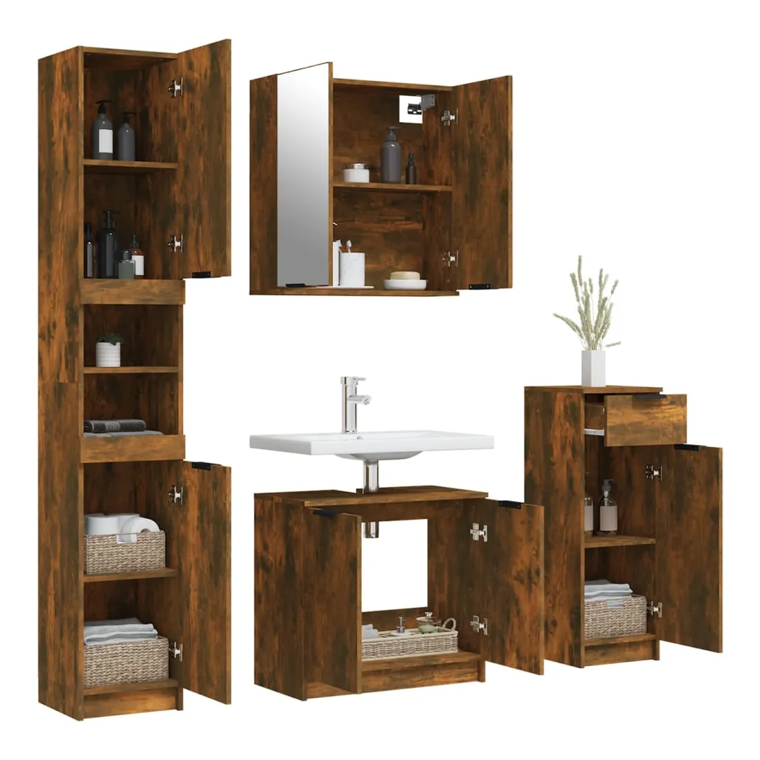 Ensemble d'armoires de salle de bain 4 pcs chêne fumé