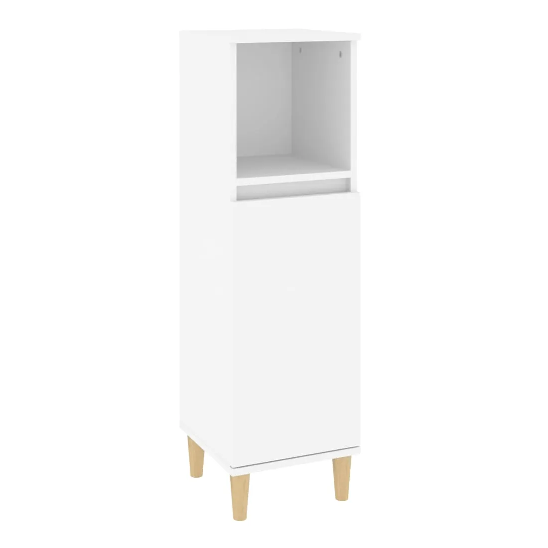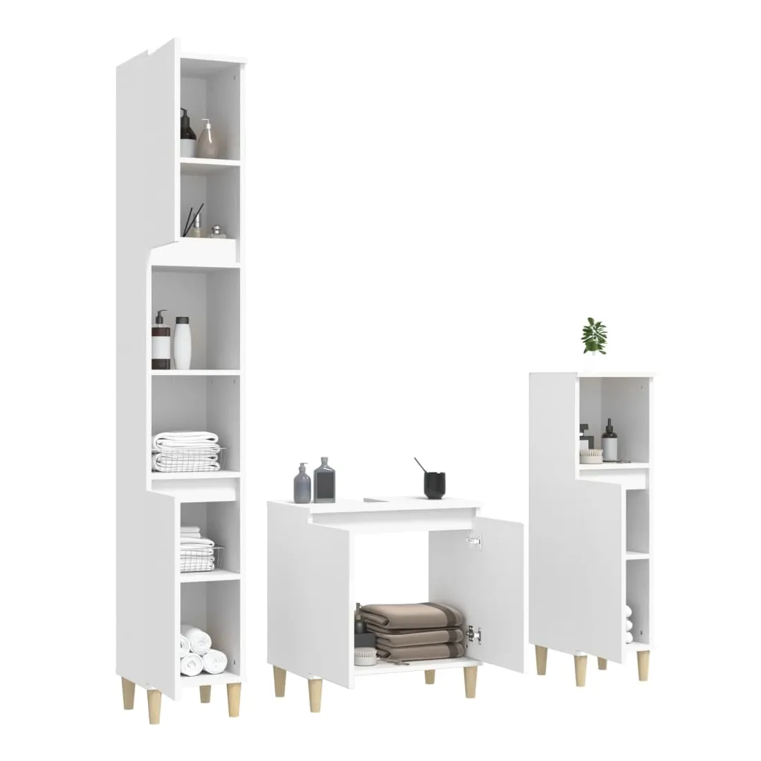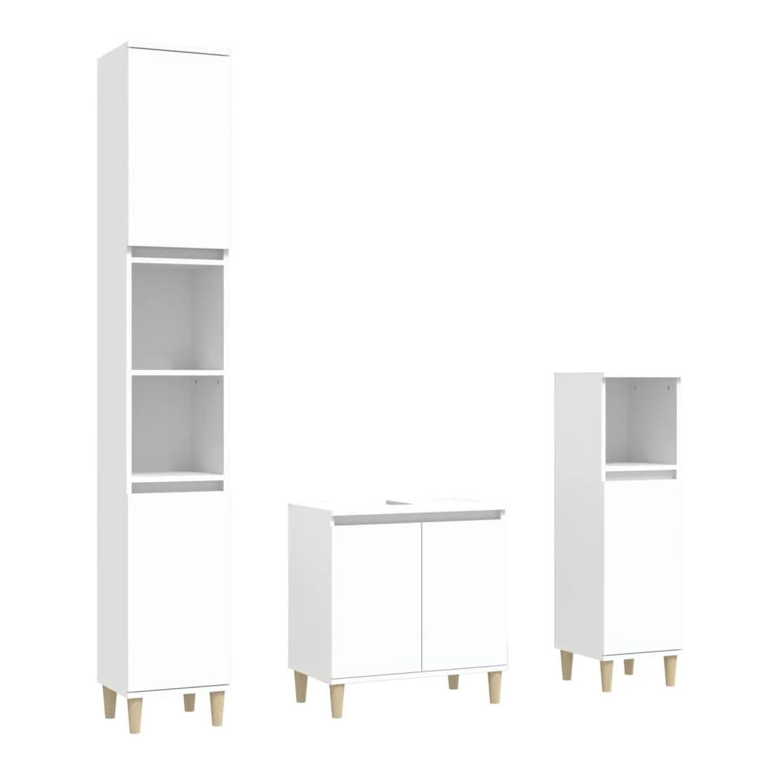 Cet ensemble de meubles de salle de bain, avec un espace de rangement spacieux, est un excellent supplément à votre salle de bain, ce qui lui donne une apparence ordonnée et saisissante ! Matériau durable : le bois d'ingénierie est d'une qualité exceptionnelle avec une surface lisse et présente également résistance, stabilité et résistance à l'humidité.Grand espace de rangement : ces armoires de salle de bain offrent un grand espace de rangement pour garder vos fournitures de salle de bain bien organisées.Pieds en bois : les pieds en bois d'eucalyptus massif donnent au meuble de salle de bain un aspect naturel et agréable tout en assurant la stabilité.Surface facile à nettoyer : l'ensemble de salle de bain est facile à nettoyer avec un chiffon humide.Design élégant : les lignes épurées et le design élégant se fondent parfaitement dans votre salle de bain. Attention :Pour éviter qu'il ne soit renversé, ce produit doit être utilisé avec le dispositif de fixation au mur fourni. Bon à savoir :Les vis et les chevilles pour l'intérieur du mur ne sont pas incluses. Nous vous conseillons de trouver et d'utiliser des vis et des chevilles adaptées spécifiquement à vos murs. Si vous n'êtes pas sûr, vous pouvez consulter un professionnel. Veuillez lire et suivre chaque étape des instructions.