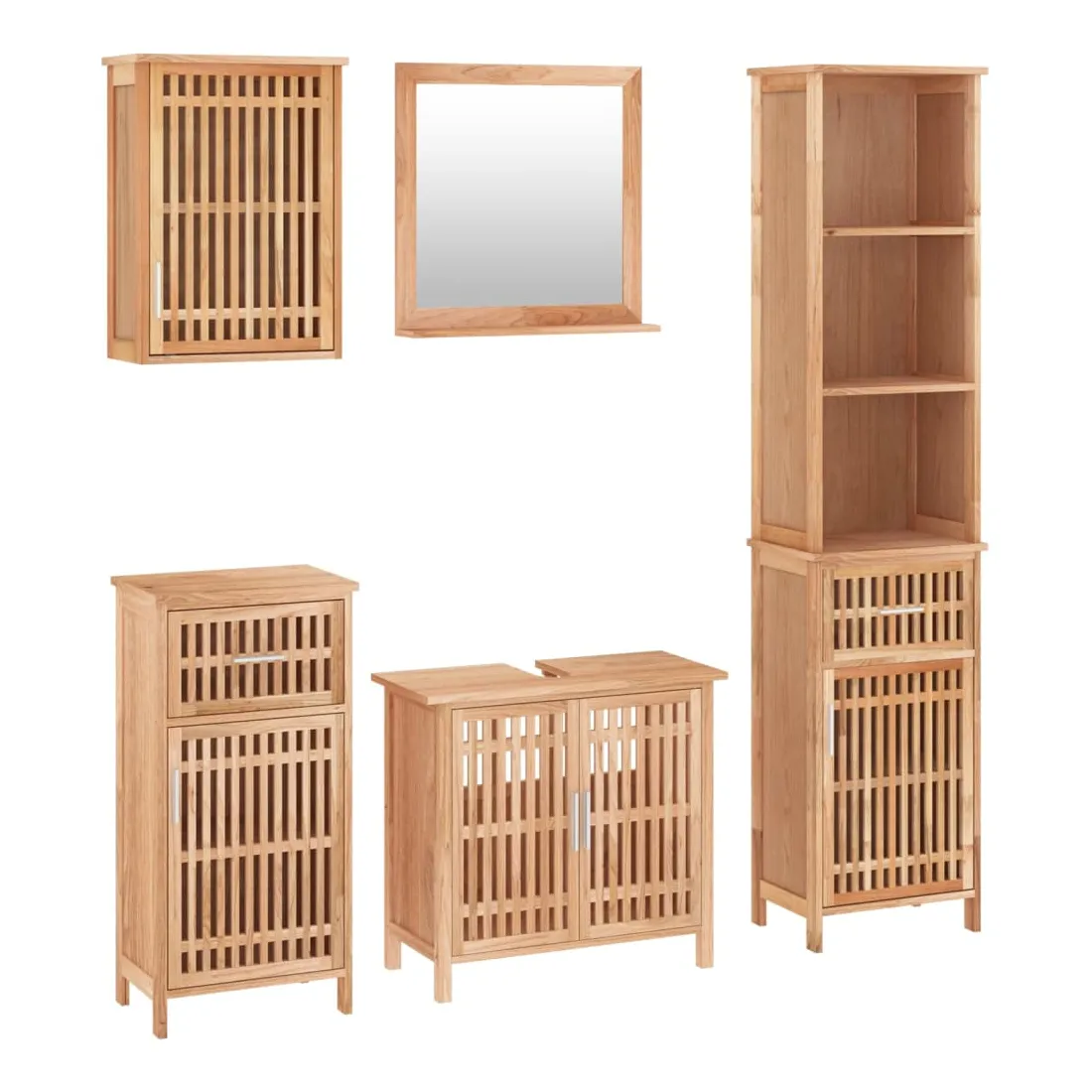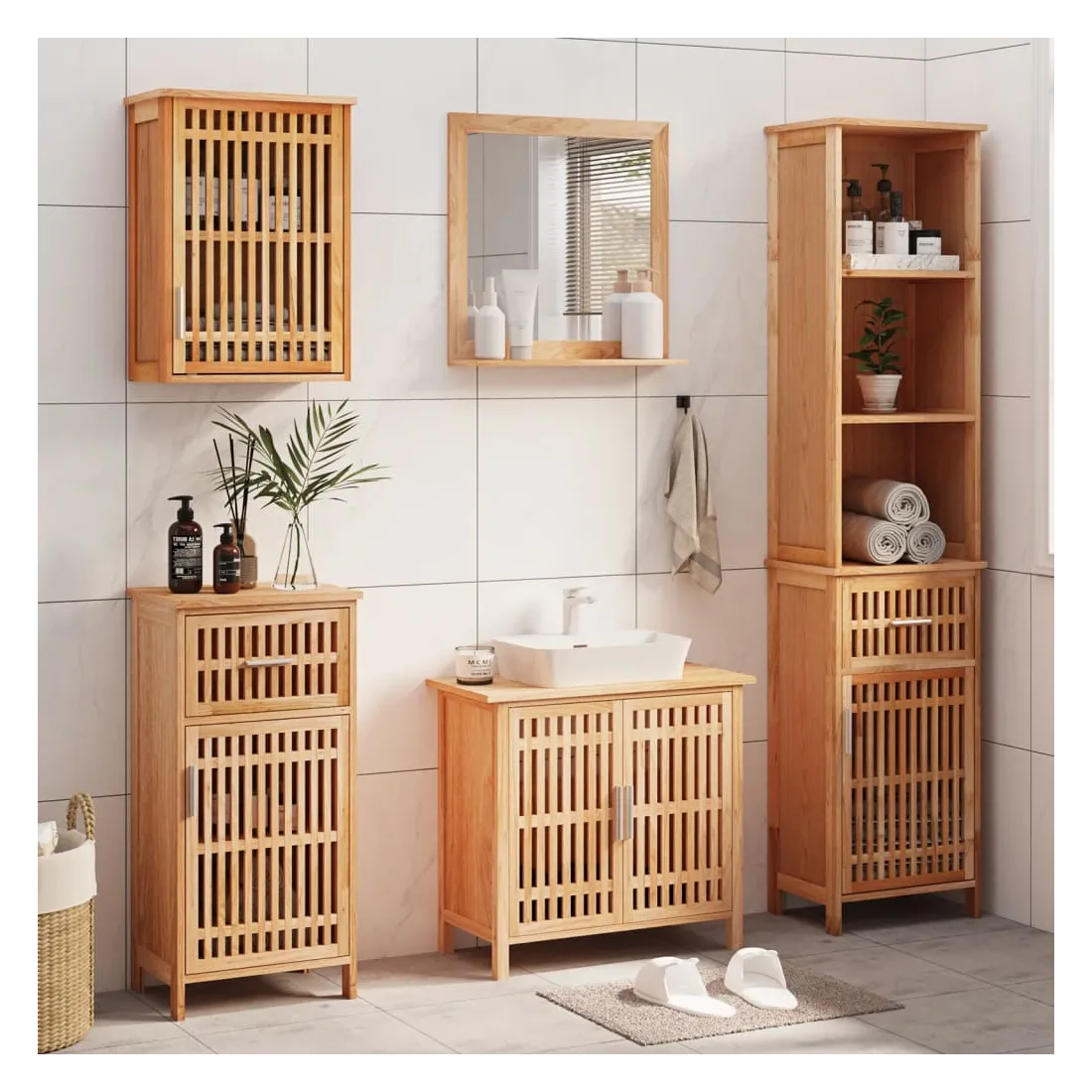 Introduisez un air de charme élégant à la décoration de votre salle de bain avec cet ensemble de meubles de salle de bain ! Bois de noyer massif : le bois de noyer massif est un bois dense et robuste qui est très résistant à l'usure, bien connu pour sa couleur caractéristique et ses motifs de grain attrayants.Grand espace de rangement : l'ensemble de rangement de salle de bain dispose d'un grand espace de rangement pour garder vos fournitures de salle de bain bien organisées.Excellente ventilation : la porte et le tiroir des armoires de salle de bain sont conçus avec un aspect treillis, ce qui garantit une ventilation optimale.Image claire : la face du miroir de courtoisie offre une image claire. Ainsi, vous pouvez profiter d'un reflet magnifique et naturel lorsque vous vous tenez devant le miroir de courtoisie.Design pratique : le dessus de ce meuble-lavabo de salle de bain est idéal pour placer le lavabo. Attention :Pour éviter qu'il ne soit renversé, ce produit doit être utilisé avec le dispositif de fixation au mur fourni. Bon à savoir :Pour faciliter au maximum le montage, chaque produit est livré avec des instructions.Les vis et les chevilles pour l'intérieur du mur ne sont pas incluses. Nous vous conseillons de trouver et d'utiliser des vis et des chevilles adaptées spécifiquement à vos murs. Si vous n'êtes pas sûr, vous pouvez consulter un professionnel. Veuillez lire et suivre chaque étape des instructions.