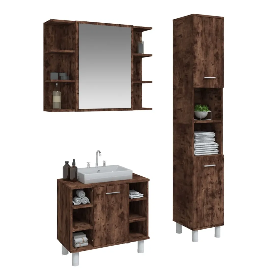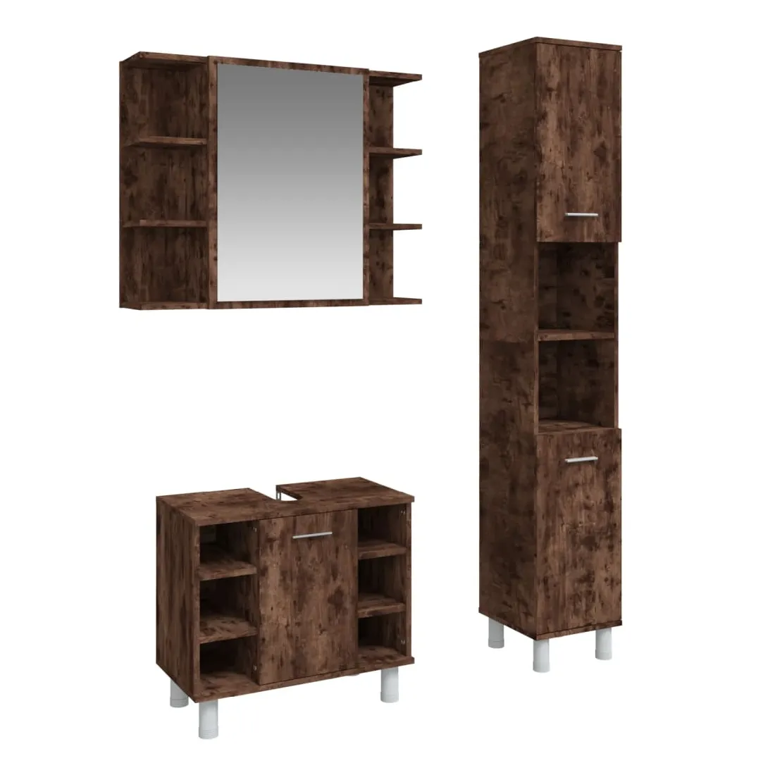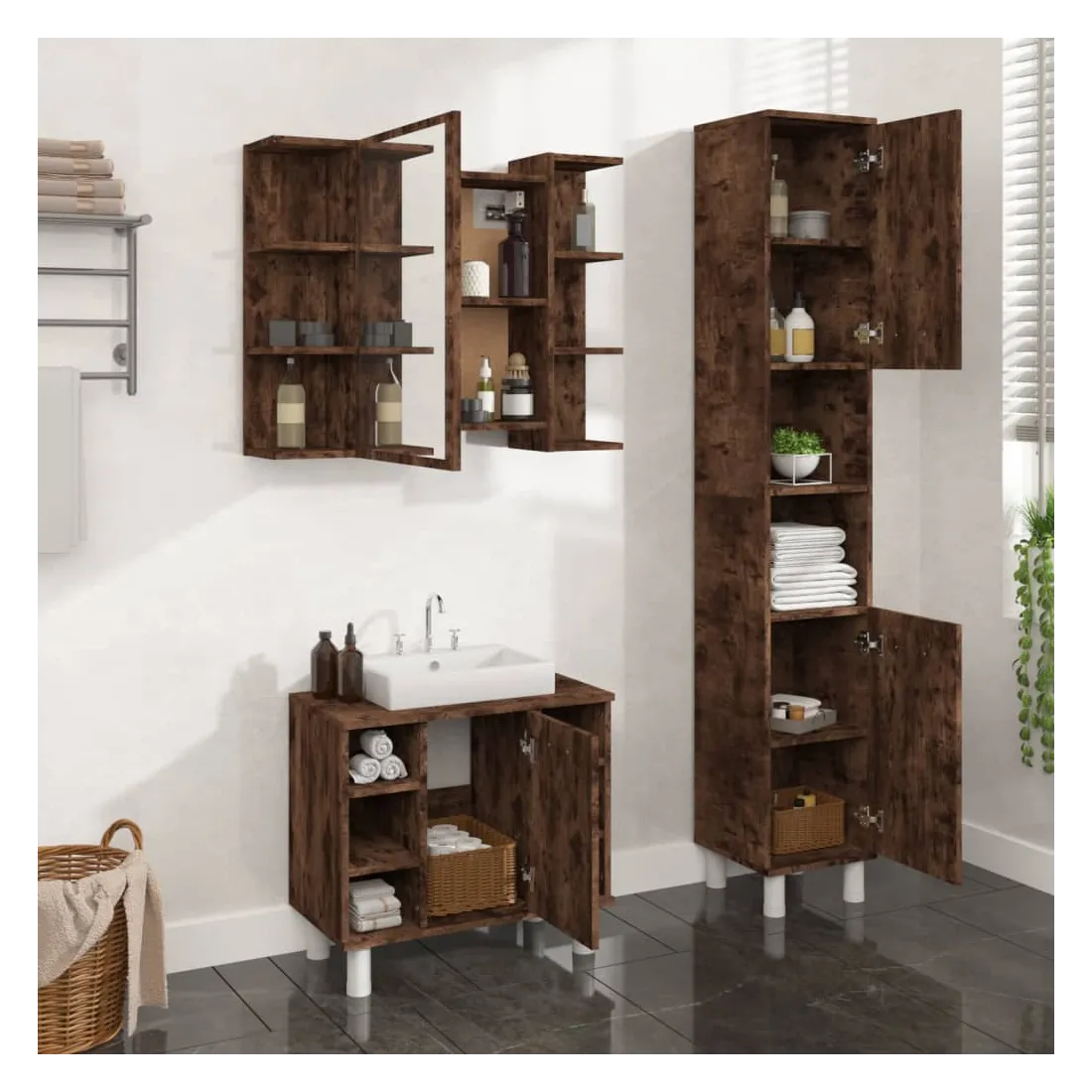 Cet ensemble d'armoires de salle de bain attrayant, avec un grand espace de rangement, présente un design élégant mais pratique. Matériau durable : le bois d'ingénierie est d'une qualité exceptionnelle avec une surface lisse et présente également résistance, stabilité et résistance à l'humidité.Grand espace de rangement : l'espace de rangement facilite l'organisation des articles dans ces meubles de salle de bain. Surface facile à nettoyer : l'ensemble de salle de bain est facile à nettoyer avec un chiffon humide.Design élégant : les lignes épurées et le design élégant se fondent parfaitement dans votre salle de bain. Attention :Pour éviter qu'il ne soit renversé, ce produit doit être utilisé avec le dispositif de fixation au mur fourni. Bon à savoir :Les vis et les chevilles pour l'intérieur du mur ne sont pas incluses. Nous vous conseillons de trouver et d'utiliser des vis et des chevilles adaptées spécifiquement à vos murs. Si vous n'êtes pas sûr, vous pouvez consulter un professionnel. Veuillez lire et suivre chaque étape des instructions. Pour faciliter au maximum le montage, chaque produit est livré avec des instructions.