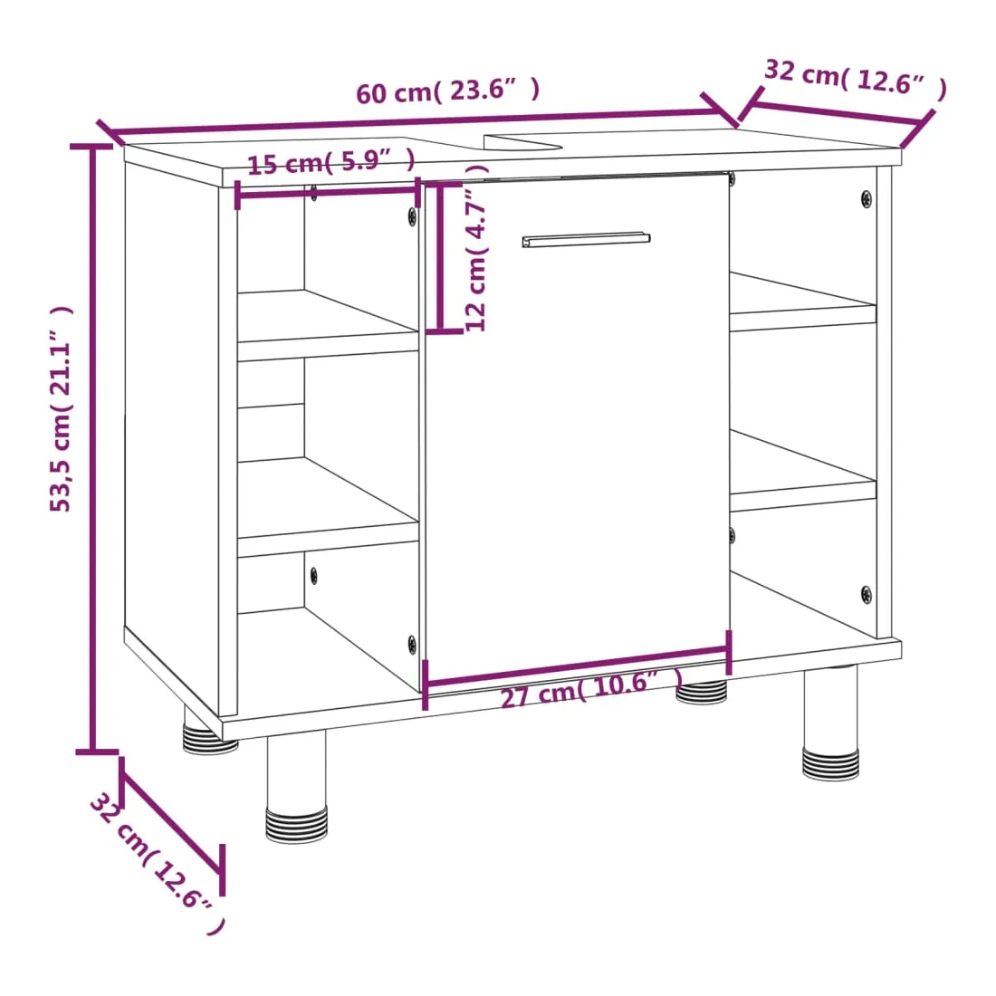 - Dimensions du meuble sous évier : 60 x 32 x 53,5 cm (L x l x H)