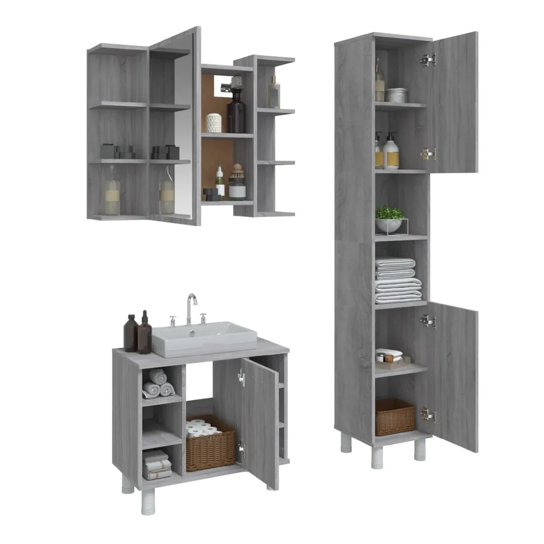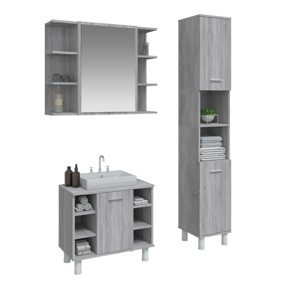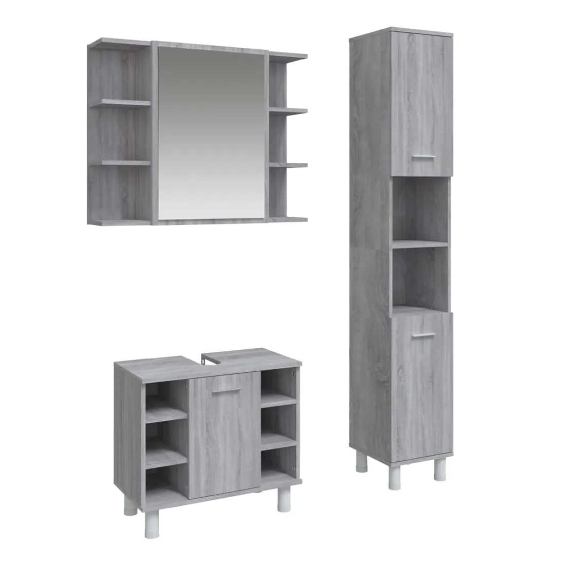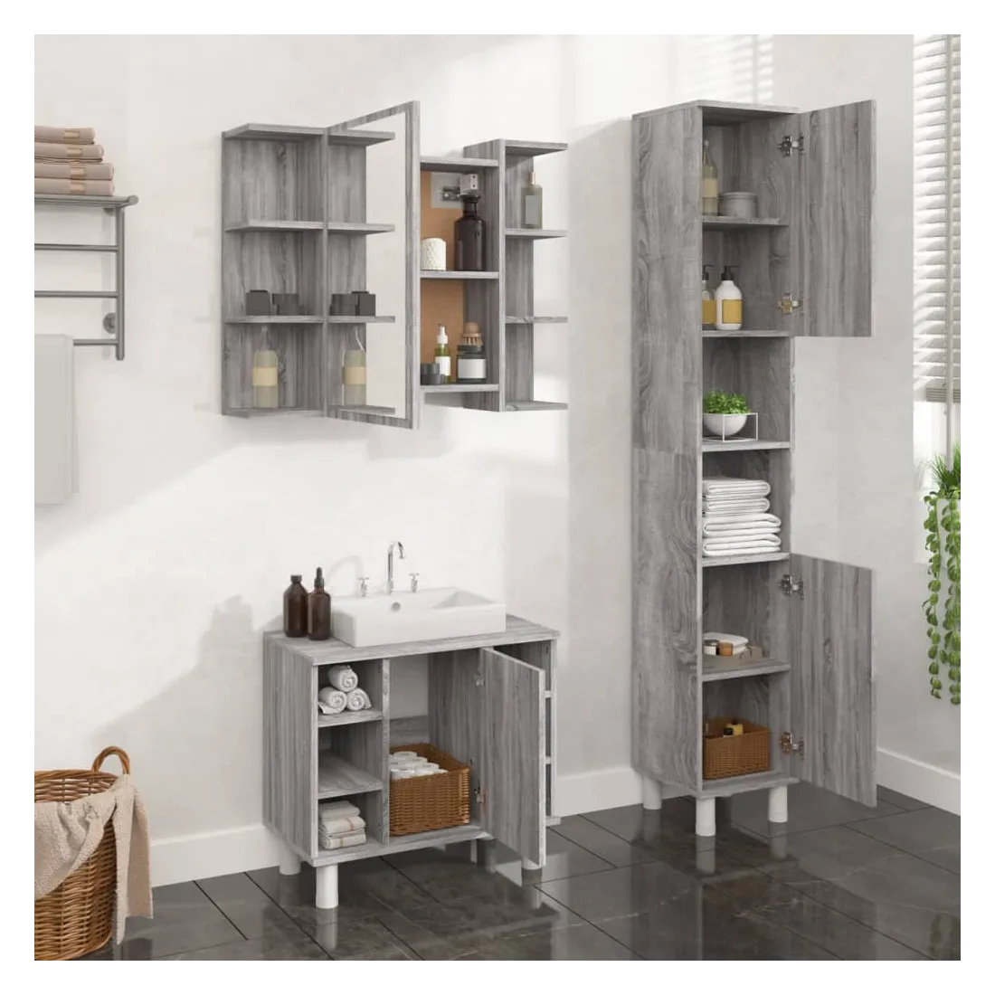 Cet ensemble d'armoires de salle de bain attrayant, avec un grand espace de rangement, présente un design élégant mais pratique. Matériau durable : le bois d'ingénierie est d'une qualité exceptionnelle avec une surface lisse et présente également résistance, stabilité et résistance à l'humidité.Grand espace de rangement : l'espace de rangement facilite l'organisation des articles dans ces meubles de salle de bain. Surface facile à nettoyer : l'ensemble de salle de bain est facile à nettoyer avec un chiffon humide.Design élégant : les lignes épurées et le design élégant se fondent parfaitement dans votre salle de bain. Attention :Pour éviter qu'il ne soit renversé, ce produit doit être utilisé avec le dispositif de fixation au mur fourni. Bon à savoir :Les vis et les chevilles pour l'intérieur du mur ne sont pas incluses. Nous vous conseillons de trouver et d'utiliser des vis et des chevilles adaptées spécifiquement à vos murs. Si vous n'êtes pas sûr, vous pouvez consulter un professionnel. Veuillez lire et suivre chaque étape des instructions. Pour faciliter au maximum le montage, chaque produit est livré avec des instructions.