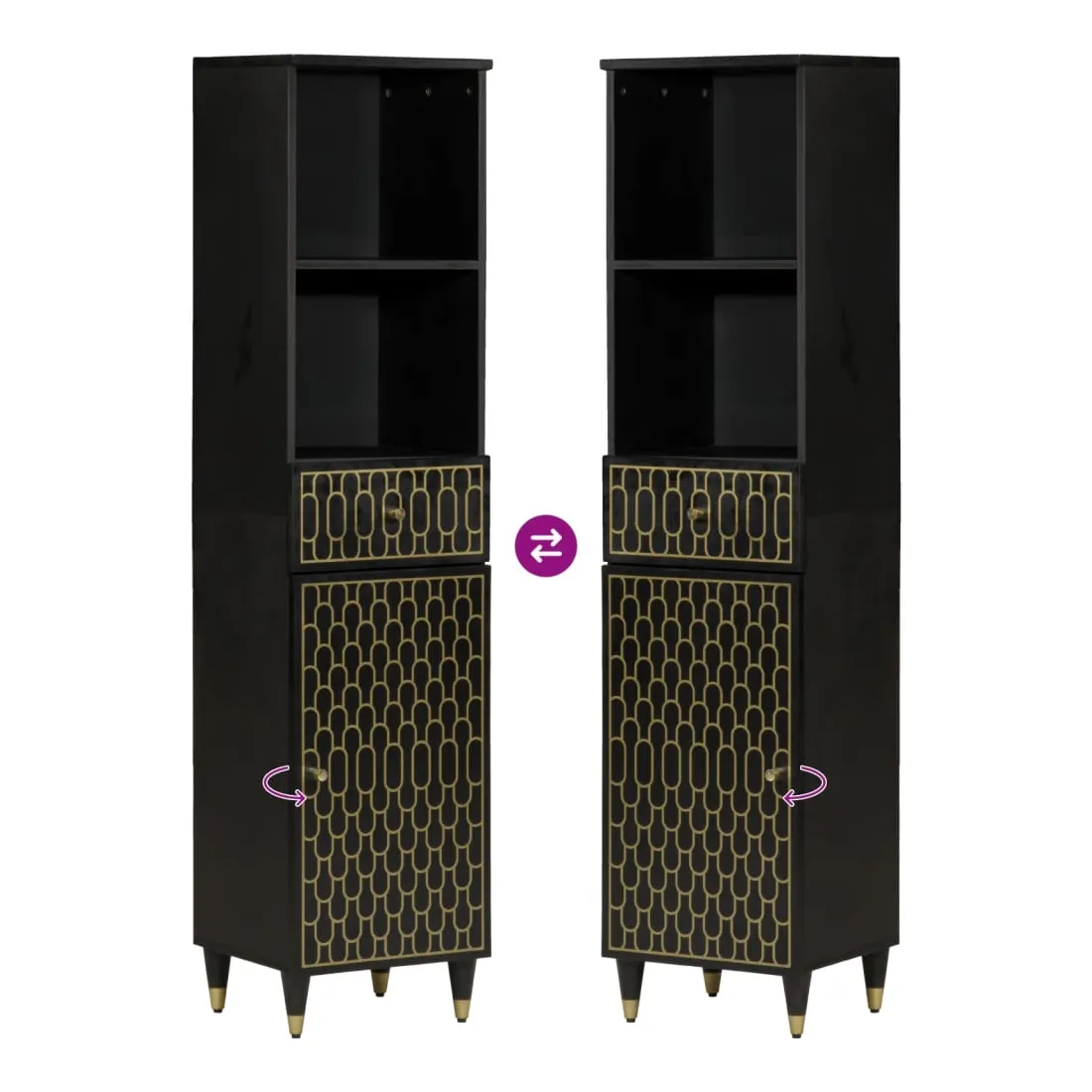 - Matériau : bois de manguier massif avec une finition noire, verre