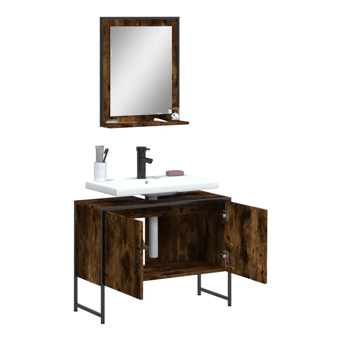 Cet ensemble d'armoires de salle de bain attrayant, avec un grand espace de rangement, présente un design élégant mais pratique. Construction robuste : l'acier revêtu de poudre et le bois d'ingénierie garantissent une construction robuste et offrent un support solide à vos articles.Grand espace de rangement : ce meuble de salle de bain offre un grand espace de rangement pour accueillir facilement vos articles de toilette et articles de bain essentiels tels que savons, shampoing, dentifrice, etc.Étagère de rangement supplémentaire : le miroir de bain est doté d'une étagère inférieure qui offre un espace de rangement supplémentaire pour les accessoires de salle de bains tels que les brosses à dents, les nettoyants pour le visage, les rasoirs, etc. Bon à savoir :Les vis et les chevilles pour l'intérieur du mur ne sont pas incluses. Nous vous conseillons de trouver et d'utiliser des vis et des chevilles adaptées spécifiquement à vos murs. Si vous n'êtes pas sûr, vous pouvez consulter un professionnel. Veuillez lire et suivre chaque étape des instructions. Attention :Pour éviter qu'il ne bascule, ce produit doit être utilisé avec le dispositif de fixation murale fourni.