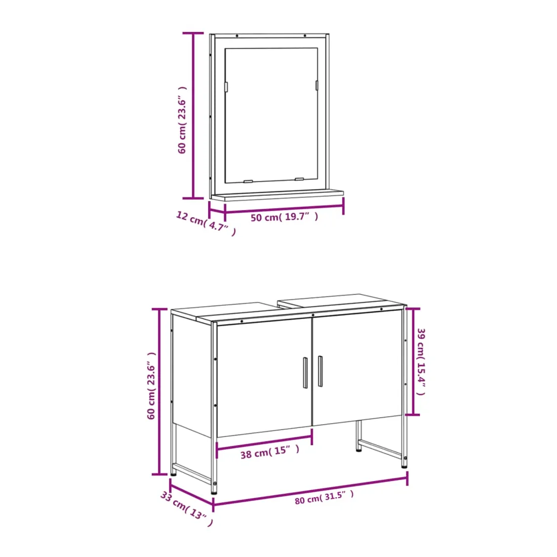 - Dimensions de l'armoire de lavabo : 80 x 33 x 60 cm (L x l x H)