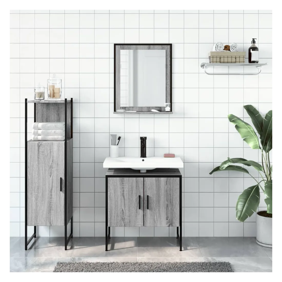 Cet ensemble d'armoires de salle de bain attrayant, avec un grand espace de rangement, présente un design élégant mais pratique. Construction robuste : l'acier revêtu de poudre et le bois d'ingénierie garantissent une construction robuste et offrent un support solide à vos articles.Grand espace de rangement : ce meuble de salle de bain offre un grand espace de rangement pour accueillir facilement vos articles de toilette et articles de bain essentiels tels que savons, shampoing, dentifrice, etc.Étagère de rangement supplémentaire : le miroir de bain est doté d'une étagère inférieure qui offre un espace de rangement supplémentaire pour les accessoires de salle de bains tels que les brosses à dents, les nettoyants pour le visage, les rasoirs, etc. Bon à savoir :Les vis et les chevilles pour l'intérieur du mur ne sont pas incluses. Nous vous conseillons de trouver et d'utiliser des vis et des chevilles adaptées spécifiquement à vos murs. Si vous n'êtes pas sûr, vous pouvez consulter un professionnel. Veuillez lire et suivre chaque étape des instructions. Attention :Pour éviter qu'il ne bascule, ce produit doit être utilisé avec le dispositif de fixation murale fourni.