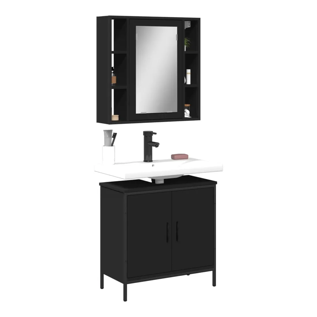 Ensemble de meubles salle de bain 2 pcs noir bois d'ingénierie