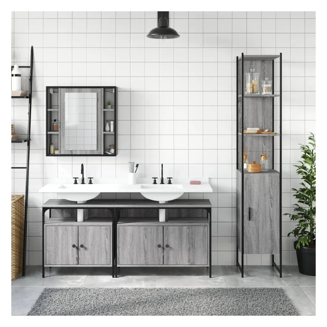 Cet ensemble d'armoires de salle de bain attrayant, avec un grand espace de rangement, présente un design élégant mais pratique. Construction robuste : l'acier revêtu de poudre et le bois d'ingénierie garantissent une construction robuste et offrent un support solide à vos articles.Grand espace de rangement : ce meuble de salle de bain offre un grand espace de rangement pour accueillir facilement vos articles de toilette et articles de bain essentiels tels que savons, shampoing, dentifrice, etc.Étagère de rangement supplémentaire : le miroir de bain est doté d'une étagère inférieure qui offre un espace de rangement supplémentaire pour les accessoires de salle de bains tels que les brosses à dents, les nettoyants pour le visage, les rasoirs, etc.Image claire : la face en verre du miroir offre une réflexion fine et non déformée. Il convient donc pour se maquiller, se raser ou vérifier son costume avant de sortir.Pieds réglables : les pieds réglables munis de coussinets en plastique maintiennent l'armoire de salle de bain en équilibre sur un sol inégal et augmentent sa stabilité. Attention :Pour éviter qu'il ne bascule, ce produit doit être utilisé avec le dispositif de fixation murale fourni. Bon à savoir :Les vis et les chevilles pour l'intérieur du mur ne sont pas incluses. Nous vous conseillons de trouver et d'utiliser des vis et des chevilles adaptées spécifiquement à vos murs. Si vous n'êtes pas sûr, vous pouvez consulter un professionnel. Veuillez lire et suivre chaque étape des instructions.