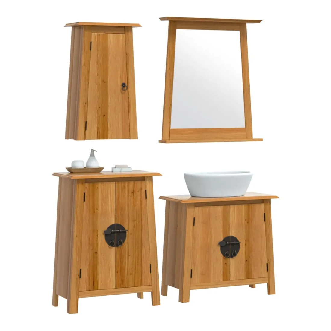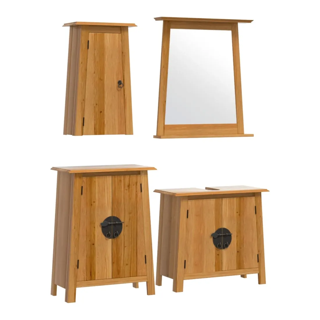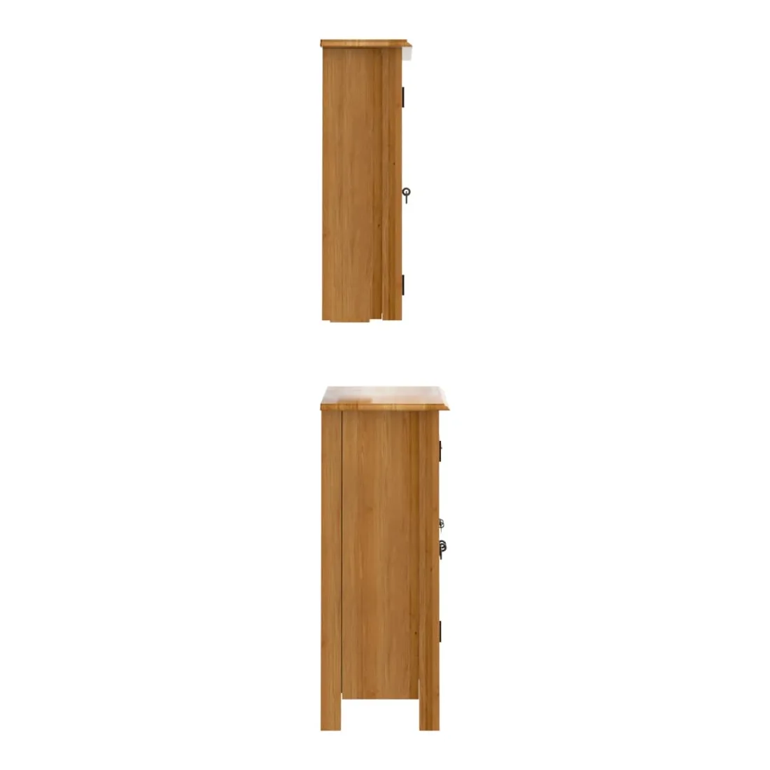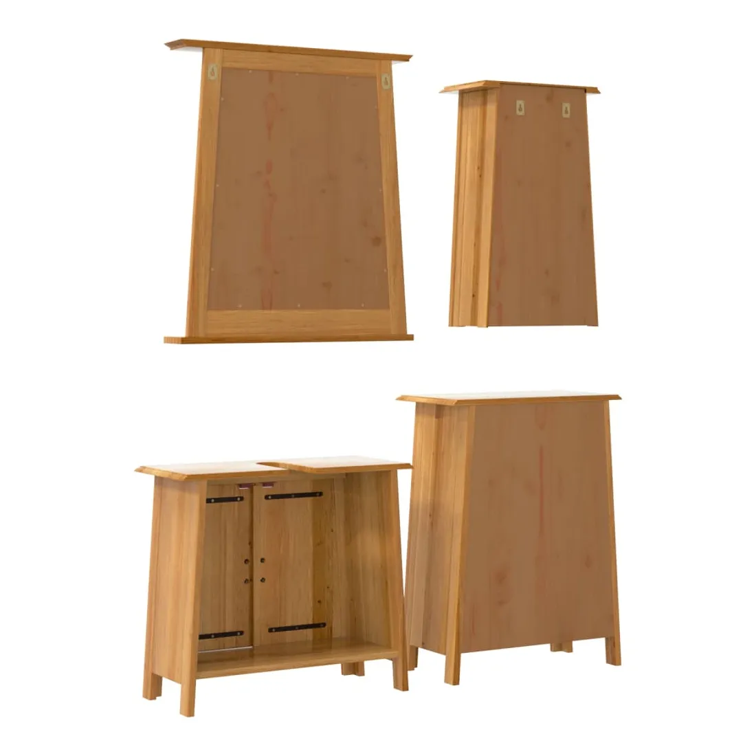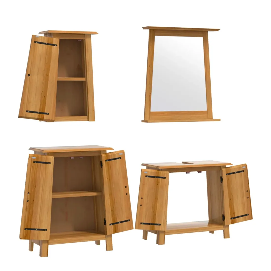 Cet ensemble de meubles de salle de bain est un excellent supplément à votre salle de bain, ce qui lui donne une apparence ordonnée et saisissante ! Bois de pin massif : le bois de pin massif est un matériau naturel magnifique. Le bois de pin a un grain droit et les nœuds donnent au matériau son aspect caractéristique et rustique.Grand espace de rangement : l'armoire de salle de bain offre suffisamment d'espace pour ranger facilement vos articles de toilette et articles de bain essentiels tels que savons, shampoing, dentifrice, etc.Poignées pratiques : les poignées en métal vous permettent d'ouvrir facilement le meuble de rangement de la salle de bains pour obtenir ce que vous voulez.Fonction murale : l'armoire murale de salle de bain peut être fixée au mur pour ajouter de l'espace de stockage supplémentaire. De cette façon, vous pouvez maximiser votre espace au sol et garder la zone propre.Image claire : le miroir offre une réflexion fine et non déformée. Il convient donc pour se maquiller, se raser ou vérifier son costume avant de sortir. Attention :Pour éviter qu'il ne bascule, ce produit doit être utilisé avec le dispositif de fixation murale (non fourni). Bon à savoir :Chaque article est unique, avec des variations de couleurs et de grains. La livraison est aléatoire, ce qui garantit l'exclusivité et l'individualité de votre produit.