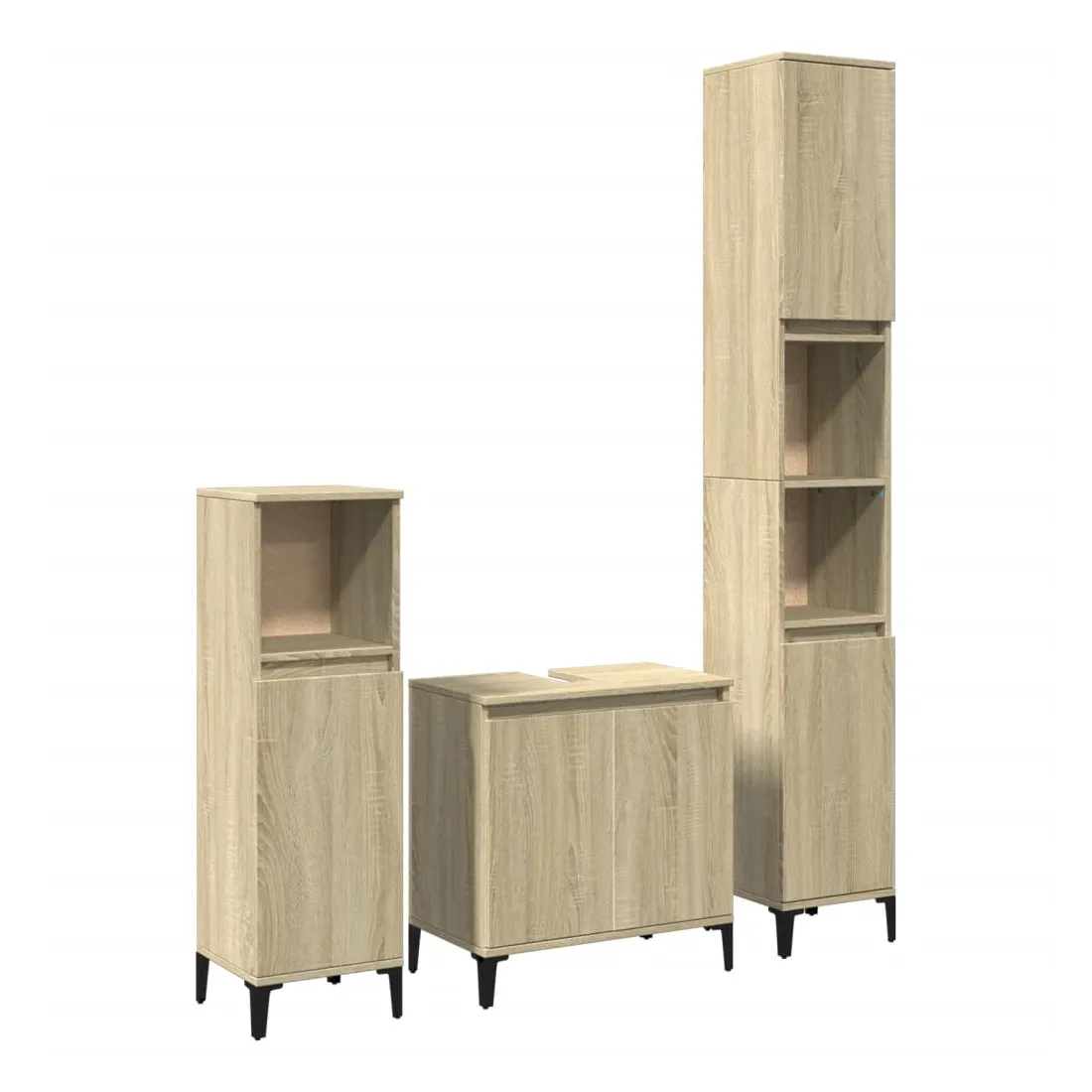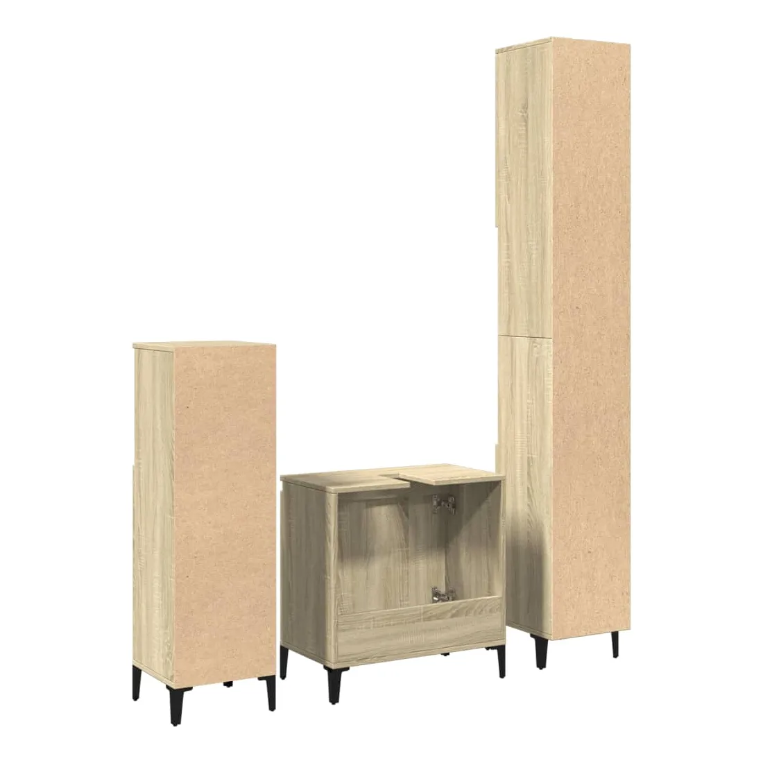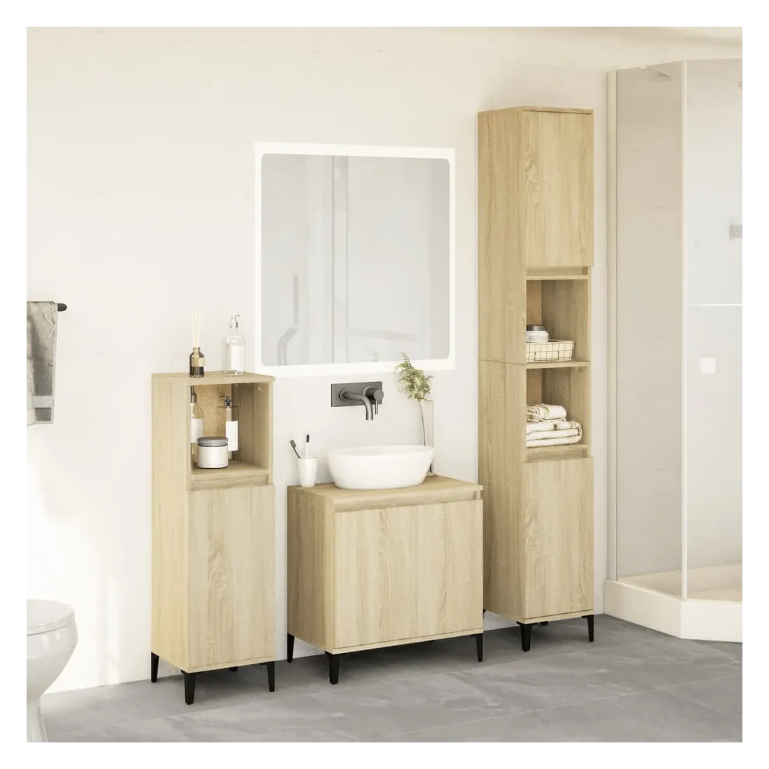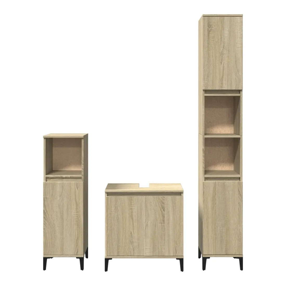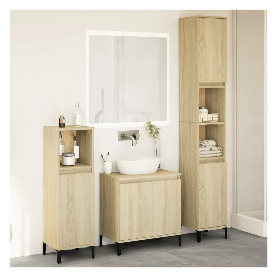 Cet ensemble de meubles de salle de bain pratique, avec un espace de rangement spacieux, est un excellent supplément à votre salle de bain, ce qui lui donne une apparence ordonnée et saisissante ! Matériau durable : le bois d'ingénierie est d'une qualité exceptionnelle avec une surface lisse et présente également résistance, stabilité et résistance à l'humidité. Structure robuste : les pieds en métal ajoutent un style calme à votre intérieur tout en assurant la stabilité.Grand espace de rangement : les meubles de salle de bain offrent diverses options de rangement et un espace spacieux pour ranger des objets dans votre salle de bain.Design peu encombrant : la partie supérieure de l'armoire de salle de bains est idéale pour placer le lavabo, ce qui permet d'utiliser pleinement l'espace vacant sous le lavabo. Attention :Pour éviter qu'il ne bascule, ce produit doit être utilisé avec le dispositif de fixation murale fourni. Bon à savoir :Les vis et les chevilles pour l'intérieur du mur ne sont pas incluses. Nous vous conseillons de trouver et d'utiliser des vis et des chevilles adaptées spécifiquement à vos murs. Si vous n'êtes pas sûr, vous pouvez consulter un professionnel. Veuillez lire et suivre chaque étape des instructions.