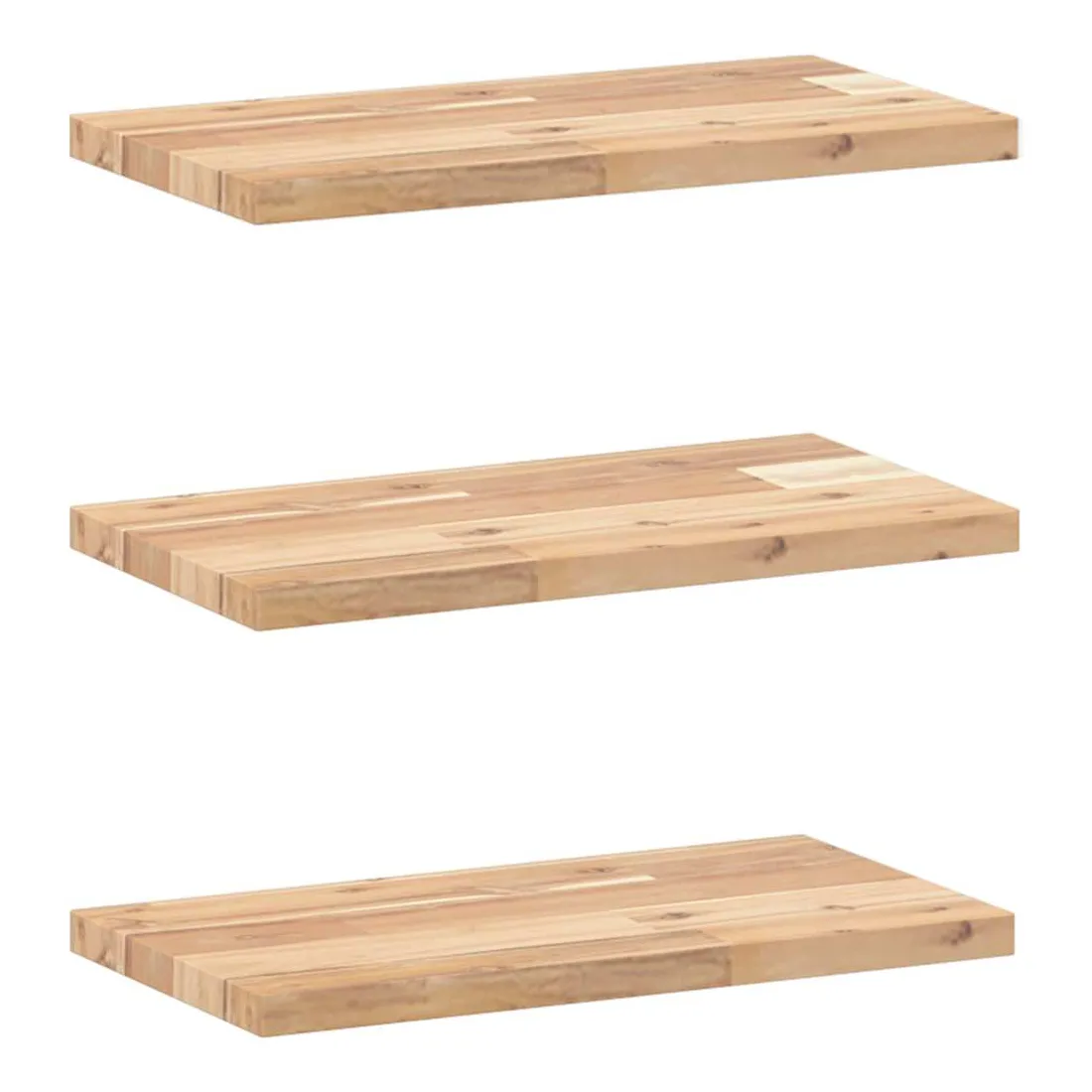 Transformez votre mur nu en un élément de décoration et un espace de rangement pratique et efficace pour votre espace de vie grâce à ces étagères flottantes en bois ! Matériau robuste et stable : le bois d'acacia massif est connu pour sa solidité et sa durabilité. Ses couleurs variées et ses grains uniques lui confèrent un aspect attrayant. Avec une excellente stabilité et résistance aux intempéries, il est idéal pour la fabrication de mobilier d'intérieur et d'extérieur.Surface non traitée : cette étagère est fabriquée en bois d'acacia non traité et vous pouvez conserver sa couleur naturelle ou la personnaliser avec de la peinture ou de la laque selon vos préférences.Bricolage aléatoire : vous pouvez disposer les étagères de manière aléatoire, par exemple de droite à gauche, de haut en bas, ou en forme d'échelle. En utilisant plusieurs étagères murales, vous pouvez créer des motifs uniques et personnalisés.Gain de place : cette étagère flottante optimise l'espace mural inutilisé en le transformant en un espace de rangement compact et efficace.Multifonctionnelle : cette étagère murale polyvalente peut être utilisée dans différents environnements, tels que la cuisine, la salle de bain, le salon, la chambre à coucher, le bureau, le garage, etc. Bon à savoir :Chaque article est unique, avec des variations de couleurs et de grains. La livraison est aléatoire, ce qui garantit l'exclusivité et l'individualité de votre produit.La livraison comprend uniquement les étagères murales. Les vis et les supports ne sont pas inclus dans la livraison.