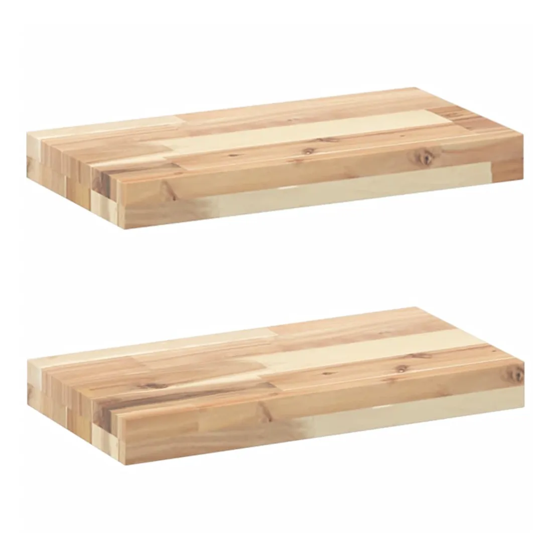 Transformez votre mur nu en un élément de décoration et un espace de rangement pratique et efficace pour votre espace de vie grâce à ces étagères flottantes en bois ! Matériau robuste et stable : le bois d'acacia massif est connu pour sa solidité et sa durabilité. Ses couleurs variées et ses grains uniques lui confèrent un aspect attrayant. Avec une excellente stabilité et résistance aux intempéries, il est idéal pour la fabrication de mobilier d'intérieur et d'extérieur.Surface non traitée : cette étagère est fabriquée en bois d'acacia non traité et vous pouvez conserver sa couleur naturelle ou la personnaliser avec de la peinture ou de la laque selon vos préférences.Bricolage aléatoire : vous pouvez disposer les étagères selon un motif aléatoire, comme droite-gauche, de haut en bas ou dans un design en forme d’échelle. En utilisant plus d’étagères murales, vous pouvez créer des motifs uniques et personnalisés.Gain de place : cette étagère flottante optimise l'espace mural inutilisé en le transformant en un espace de rangement compact et efficace.Multifonctionnelle : cette étagère murale polyvalente peut être utilisée dans différents environnements, tels que la cuisine, la salle de bain, le salon, la chambre à coucher, le bureau, le garage, etc. Bon à savoir :Chaque article est unique, avec des variations de couleurs et de grains. La livraison est aléatoire, ce qui garantit l'exclusivité et l'individualité de votre produit.La livraison comprend uniquement les étagères murales. Les vis et les supports ne sont pas inclus dans la livraison.