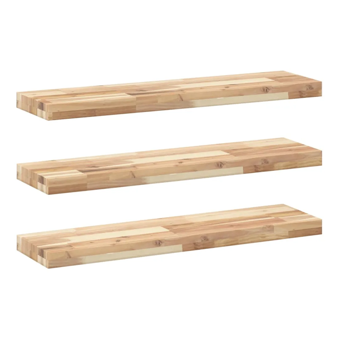 Transformez votre mur nu en un élément de décoration et un espace de rangement pratique et efficace pour votre espace de vie grâce à ces étagères flottantes en bois ! Matériau robuste et stable : le bois d'acacia massif est connu pour sa solidité et sa durabilité. Ses couleurs variées et ses grains uniques lui confèrent un aspect attrayant. Avec une excellente stabilité et résistance aux intempéries, il est idéal pour la fabrication de mobilier d'intérieur et d'extérieur.Surface non traitée : cette étagère est fabriquée en bois d'acacia non traité et vous pouvez conserver sa couleur naturelle ou la personnaliser avec de la peinture ou de la laque selon vos préférences.Bricolage aléatoire : vous pouvez disposer les étagères selon un motif aléatoire, comme droite-gauche, de haut en bas ou dans un design en forme d’échelle. En utilisant plus d’étagères murales, vous pouvez créer des motifs uniques et personnalisés.Gain de place : cette étagère flottante optimise l'espace mural inutilisé en le transformant en un espace de rangement compact et efficace.Multifonctionnelle : cette étagère murale polyvalente peut être utilisée dans différents environnements, tels que la cuisine, la salle de bain, le salon, la chambre à coucher, le bureau, le garage, etc. Bon à savoir :Chaque article est unique, avec des variations de couleurs et de grains. La livraison est aléatoire, ce qui garantit l'exclusivité et l'individualité de votre produit.La livraison comprend uniquement les étagères murales. Les vis et les supports ne sont pas inclus dans la livraison.