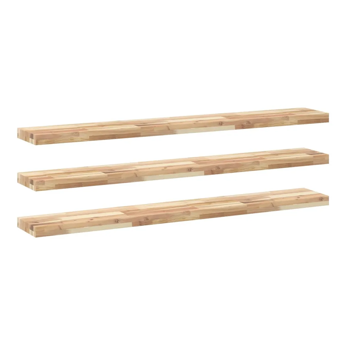 Transformez votre mur nu en un élément de décoration et un espace de rangement pratique et efficace pour votre espace de vie grâce à ces étagères flottantes en bois ! Matériau robuste et stable : le bois d'acacia massif est connu pour sa solidité et sa durabilité. Ses couleurs variées et ses grains uniques lui confèrent un aspect attrayant. Avec une excellente stabilité et résistance aux intempéries, il est idéal pour la fabrication de mobilier d'intérieur et d'extérieur.Surface non traitée : cette étagère est fabriquée en bois d'acacia non traité et vous pouvez conserver sa couleur naturelle ou la personnaliser avec de la peinture ou de la laque selon vos préférences.Bricolage aléatoire : vous pouvez disposer les étagères selon un motif aléatoire, comme droite-gauche, de haut en bas ou dans un design en forme d’échelle. En utilisant plus d’étagères murales, vous pouvez créer des motifs uniques et personnalisés.Gain de place : cette étagère flottante optimise l'espace mural inutilisé en le transformant en un espace de rangement compact et efficace.Multifonctionnelle : cette étagère murale polyvalente peut être utilisée dans différents environnements, tels que la cuisine, la salle de bain, le salon, la chambre à coucher, le bureau, le garage, etc. Bon à savoir :Chaque article est unique, avec des variations de couleurs et de grains. La livraison est aléatoire, ce qui garantit l'exclusivité et l'individualité de votre produit.La livraison comprend uniquement les étagères murales. Les vis et les supports ne sont pas inclus dans la livraison.