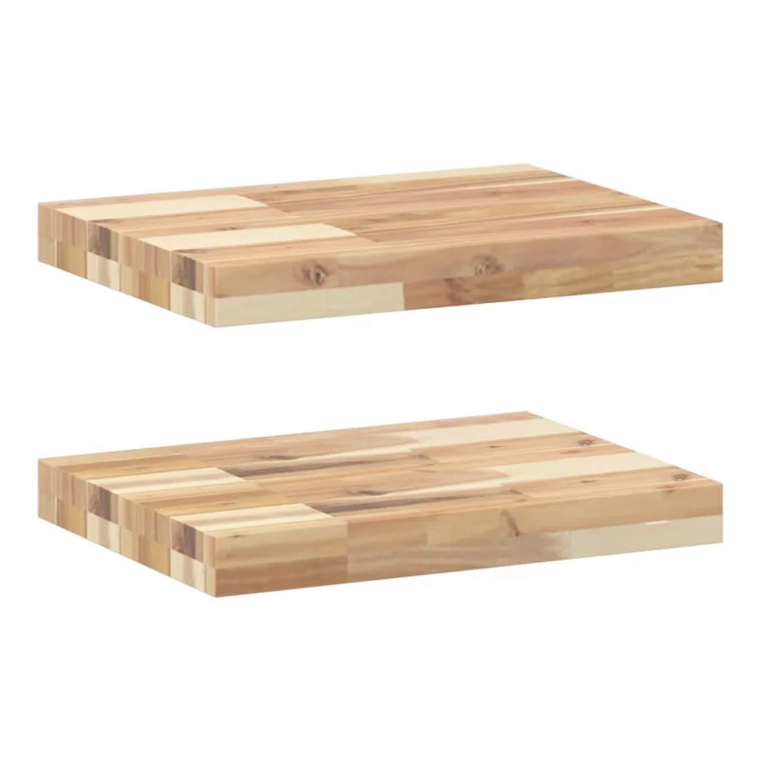 Transformez votre mur nu en un élément de décoration et un espace de rangement pratique et efficace pour votre espace de vie grâce à ces étagères flottantes en bois ! Matériau robuste et stable : le bois d'acacia massif est connu pour sa solidité et sa durabilité. Ses couleurs variées et ses grains uniques lui confèrent un aspect attrayant. Avec une excellente stabilité et résistance aux intempéries, il est idéal pour la fabrication de mobilier d'intérieur et d'extérieur.Surface non traitée : cette étagère est fabriquée en bois d'acacia non traité et vous pouvez conserver sa couleur naturelle ou la personnaliser avec de la peinture ou de la laque selon vos préférences.Bricolage aléatoire : vous pouvez disposer les étagères selon un motif aléatoire, comme droite-gauche, de haut en bas ou dans un design en forme d’échelle. En utilisant plus d’étagères murales, vous pouvez créer des motifs uniques et personnalisés.Gain de place : cette étagère flottante optimise l'espace mural inutilisé en le transformant en un espace de rangement compact et efficace.Multifonctionnelle : cette étagère murale polyvalente peut être utilisée dans différents environnements, tels que la cuisine, la salle de bain, le salon, la chambre à coucher, le bureau, le garage, etc. Bon à savoir :Chaque article est unique, avec des variations de couleurs et de grains. La livraison est aléatoire, ce qui garantit l'exclusivité et l'individualité de votre produit.La livraison comprend uniquement les étagères murales. Les vis et les supports ne sont pas inclus dans la livraison.