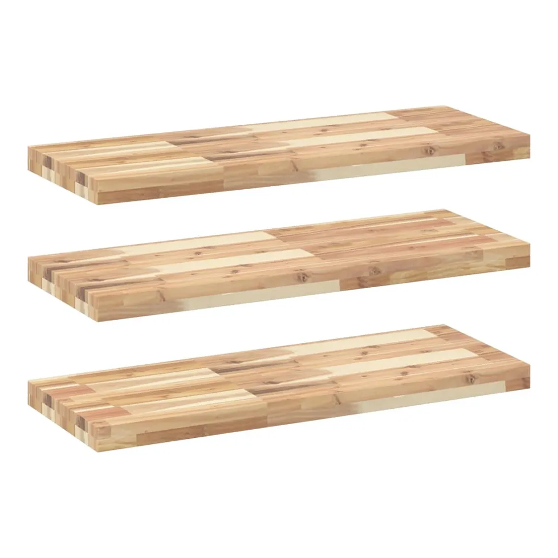 Transformez votre mur nu en un élément de décoration et un espace de rangement pratique et efficace pour votre espace de vie grâce à ces étagères flottantes en bois ! Matériau robuste et stable : le bois d'acacia massif est connu pour sa solidité et sa durabilité. Ses couleurs variées et ses grains uniques lui confèrent un aspect attrayant. Avec une excellente stabilité et résistance aux intempéries, il est idéal pour la fabrication de mobilier d'intérieur et d'extérieur.Surface non traitée : cette étagère est fabriquée en bois d'acacia non traité et vous pouvez conserver sa couleur naturelle ou la personnaliser avec de la peinture ou de la laque selon vos préférences.Bricolage aléatoire : vous pouvez disposer les étagères selon un motif aléatoire, comme droite-gauche, de haut en bas ou dans un design en forme d’échelle. En utilisant plus d’étagères murales, vous pouvez créer des motifs uniques et personnalisés.Gain de place : cette étagère flottante optimise l'espace mural inutilisé en le transformant en un espace de rangement compact et efficace.Multifonctionnelle : cette étagère murale polyvalente peut être utilisée dans différents environnements, tels que la cuisine, la salle de bain, le salon, la chambre à coucher, le bureau, le garage, etc. Bon à savoir :Chaque article est unique, avec des variations de couleurs et de grains. La livraison est aléatoire, ce qui garantit l'exclusivité et l'individualité de votre produit.La livraison comprend uniquement les étagères murales. Les vis et les supports ne sont pas inclus dans la livraison.