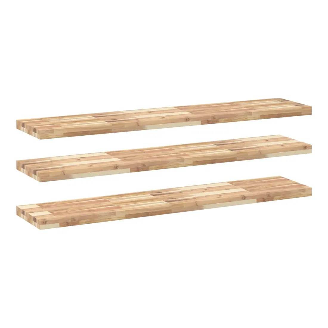 Transformez votre mur nu en un élément de décoration et un espace de rangement pratique et efficace pour votre espace de vie grâce à ces étagères flottantes en bois ! Matériau robuste et stable : le bois d'acacia massif est connu pour sa solidité et sa durabilité. Ses couleurs variées et ses grains uniques lui confèrent un aspect attrayant. Avec une excellente stabilité et résistance aux intempéries, il est idéal pour la fabrication de mobilier d'intérieur et d'extérieur.Surface non traitée : cette étagère est fabriquée en bois d'acacia non traité et vous pouvez conserver sa couleur naturelle ou la personnaliser avec de la peinture ou de la laque selon vos préférences.Bricolage aléatoire : vous pouvez disposer les étagères selon un motif aléatoire, comme droite-gauche, de haut en bas ou dans un design en forme d’échelle. En utilisant plus d’étagères murales, vous pouvez créer des motifs uniques et personnalisés.Gain de place : cette étagère flottante optimise l'espace mural inutilisé en le transformant en un espace de rangement compact et efficace.Multifonctionnelle : cette étagère murale polyvalente peut être utilisée dans différents environnements, tels que la cuisine, la salle de bain, le salon, la chambre à coucher, le bureau, le garage, etc. Bon à savoir :Chaque article est unique, avec des variations de couleurs et de grains. La livraison est aléatoire, ce qui garantit l'exclusivité et l'individualité de votre produit.La livraison comprend uniquement les étagères murales. Les vis et les supports ne sont pas inclus dans la livraison.