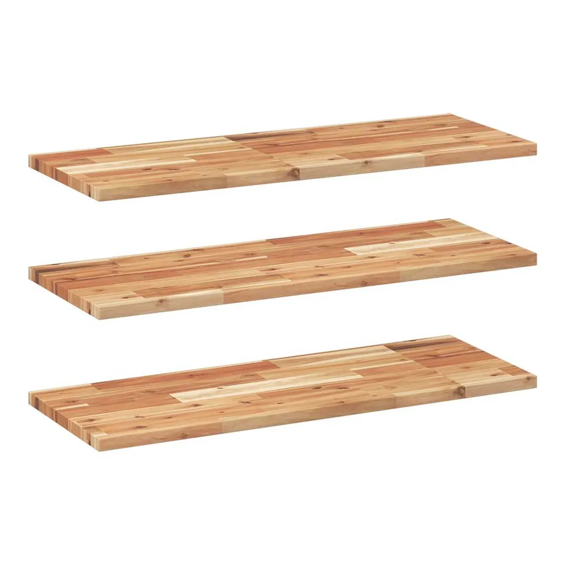 vidaXLTransformez votre mur nu en un élément de décoration et un espace de rangement pratique et efficace pour votre espace de vie grâce à ces étagères flottantes en bois ! Matériau robuste et stable : le bois d'acacia massif est connu pour sa solidité et sa durabilité. Ses couleurs variées et ses grains uniques lui confèrent un aspect attrayant. Avec une excellente stabilité et résistance aux intempéries, il est idéal pour la fabrication de mobilier d'intérieur et d'extérieur.Surface finie à l’huile : cette planche d'étagère est faite de bois d'acacia avec une finition à l'huile qui la rend plus résistante à l'humidité et aux dégâts d'eau, tout en préservant son caractère unique.Bricolage aléatoire : vous pouvez disposer les étagères selon un motif aléatoire, comme droite-gauche, de haut en bas ou dans un design en forme d’échelle. En utilisant plus d’étagères murales, vous pouvez créer des motifs uniques et personnalisés.Gain de place : cette étagère flottante optimise l'espace mural inutilisé en le transformant en un espace de rangement compact et efficace.Multifonctionnelle : cette étagère murale polyvalente peut être utilisée dans différents environnements, tels que la cuisine, la salle de bain, le salon, la chambre à coucher, le bureau, le garage, etc. Bon à savoir :Chaque article est unique, avec des variations de couleurs et de grains. La livraison est aléatoire, ce qui garantit l'exclusivité et l'individualité de votre produit.La livraison comprend uniquement les étagères murales. Les vis et les supports ne sont pas inclus dans la livraison.Il est recommandé de réappliquer une finition à l’huile pour conserver sa qualité et son apparence au moins une fois par an.