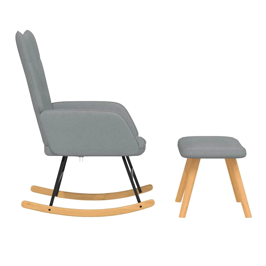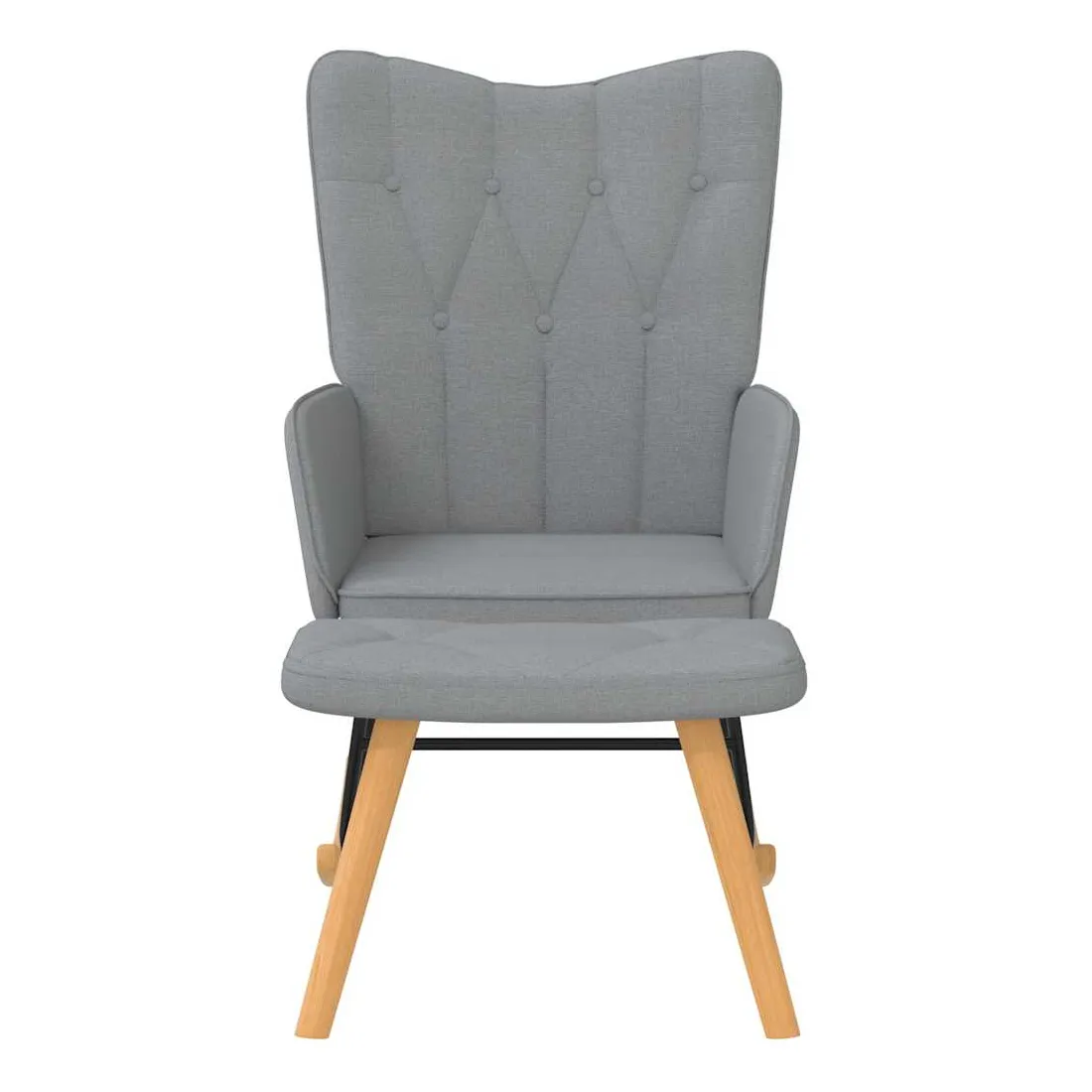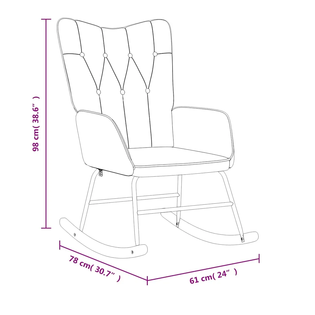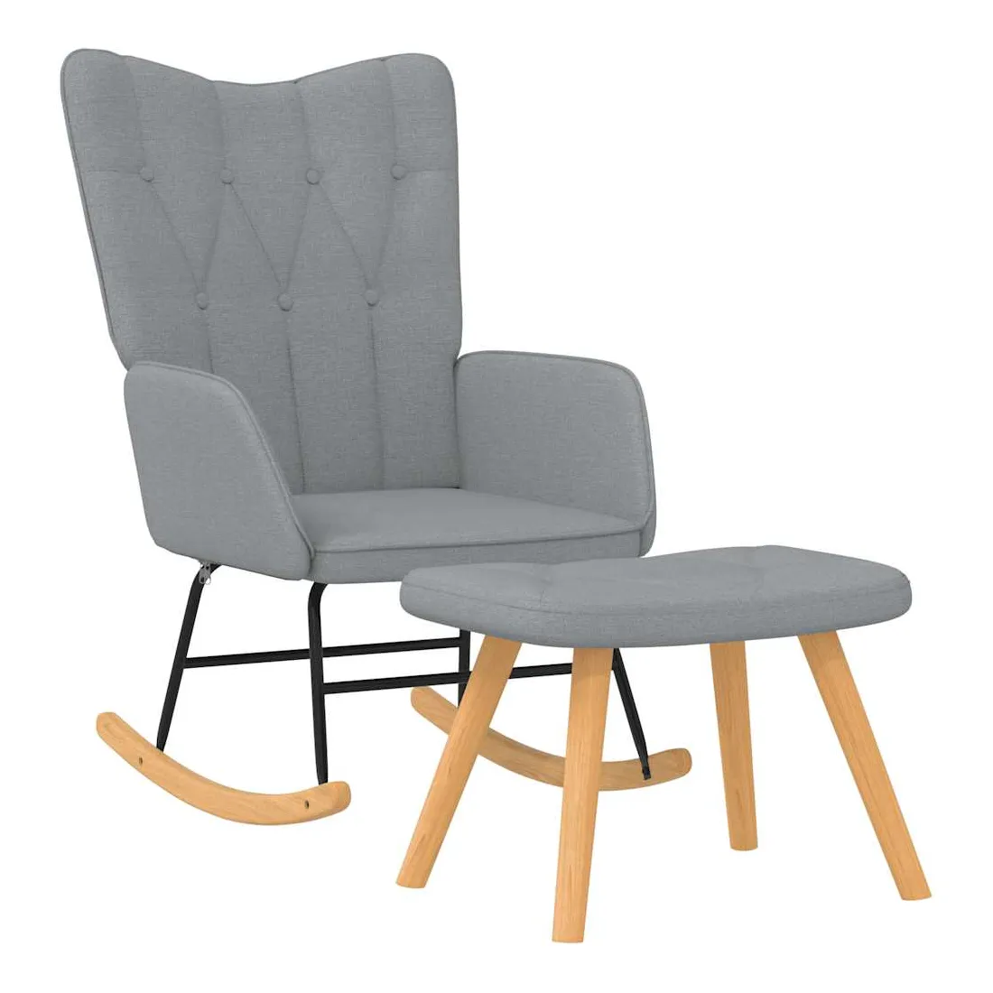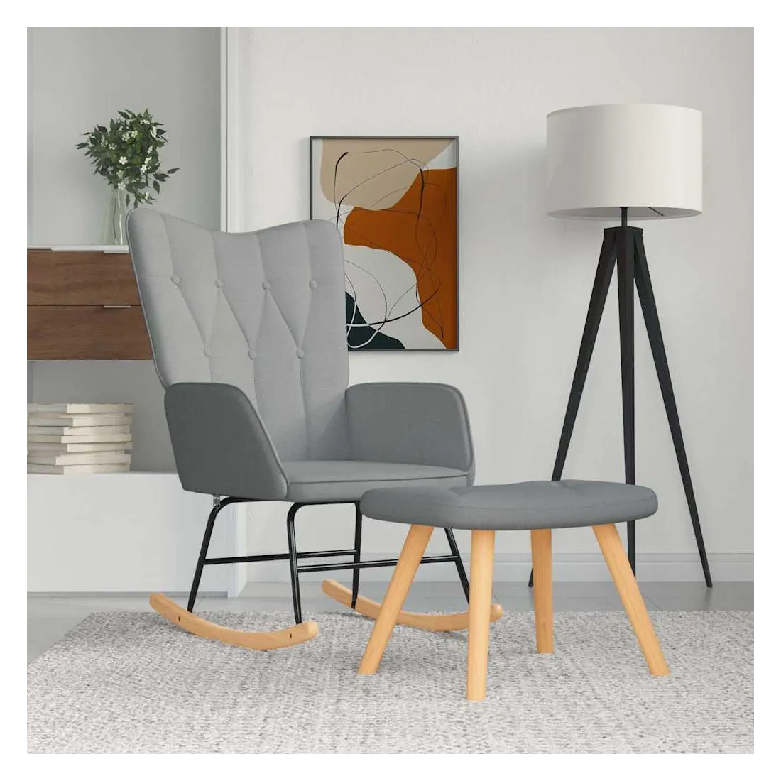 Cette chaise à bascule avec tabouret, au design chic et élégant, apportera une touche de modernité à votre décoration. Dotée de 7 boutons et de lignes, cette chaise de relaxation est esthétique. Grâce à sa mousse rembourrée recouverte d'un tissu doux au toucher, vous pourrez profiter d'un confort optimal pendant votre temps d'assise. Avec la conception de longs rails à bascule, le fauteuil ne basculera pas facilement. De plus, soutenue par un cadre et des pieds en acier, ainsi que par des rails à bascule en bois, la chaise de salon avec un tabouret est stable et durable.