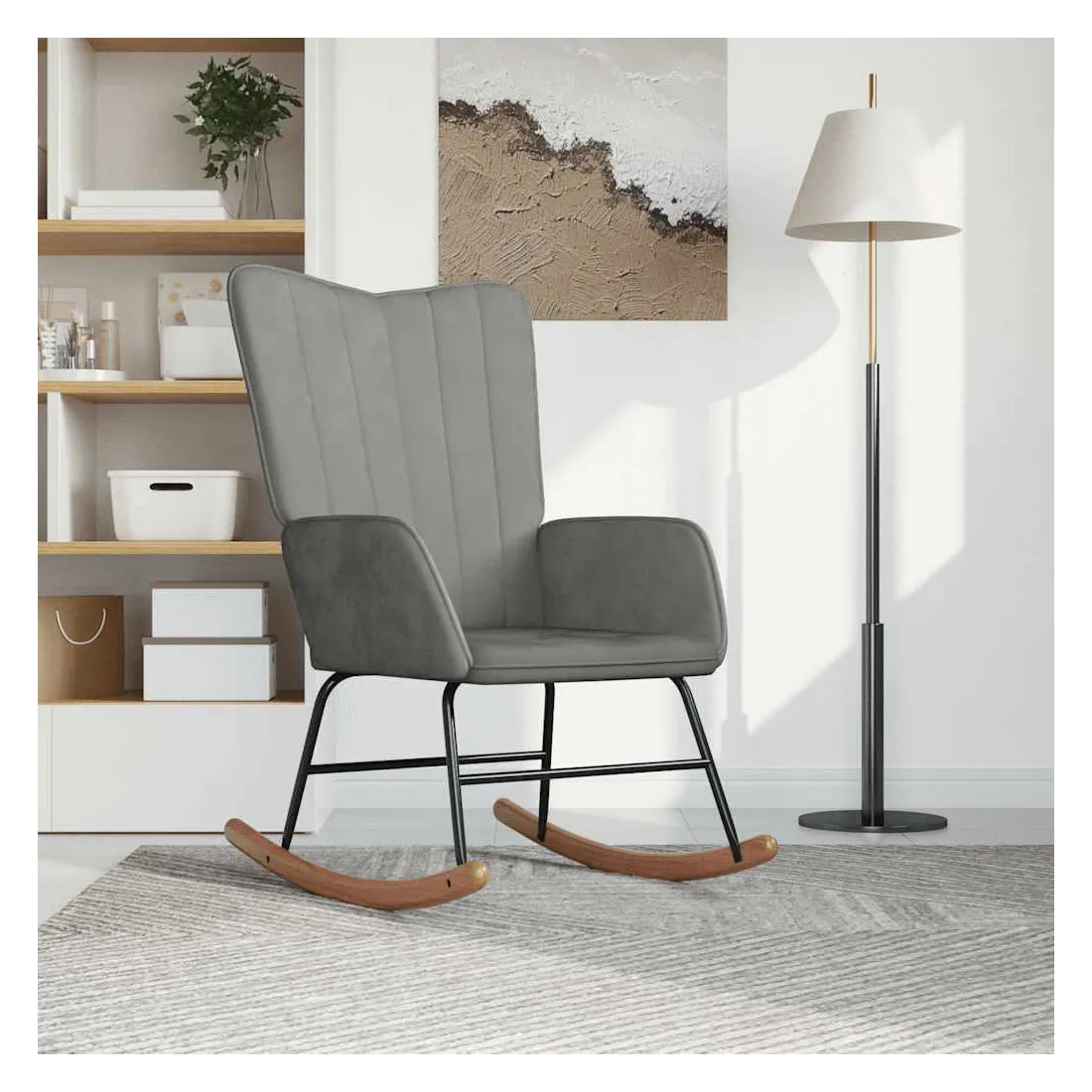 Cette chaise à bascule est un excellent supplément à votre décor existant. Ce fauteuil, avec quelques lignes sur son dossier, est esthétique. Grâce à sa mousse rembourrée recouverte de velours doux au toucher, vous pourrez profiter d'un confort optimal pendant votre temps d'assise. Avec la conception de longs rails à bascule, la chaise de relaxation ne basculera pas facilement. Soutenue par un cadre et des pieds en acier, ainsi que par des rails à bascule en bois, la chaise de salon est stable et durable.