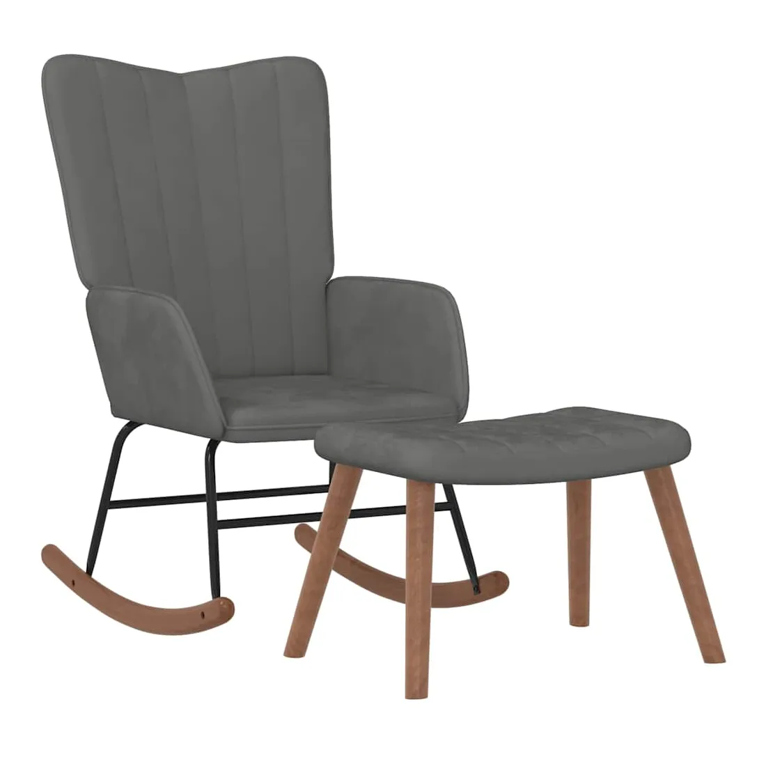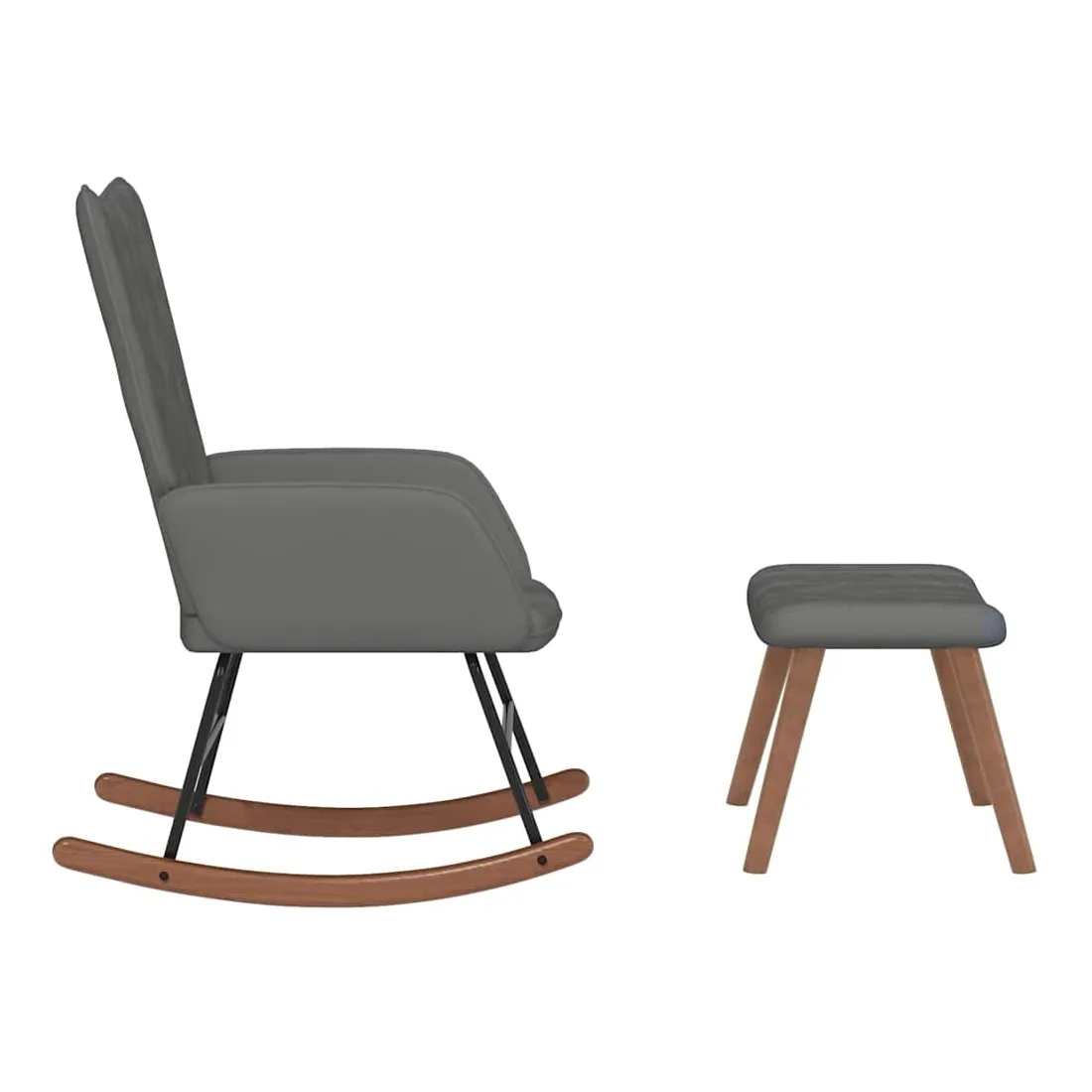 Cette chaise à bascule avec tabouret est un excellent supplément à votre décor existant. Ce fauteuil, avec quelques lignes sur son dossier, est esthétique. Grâce à sa mousse rembourrée recouverte de velours doux au toucher, vous pourrez profiter d'un confort optimal pendant votre temps d'assise. Avec la conception de longs rails à bascule, la chaise de relaxation ne basculera pas facilement. Soutenue par un cadre et des pieds en acier, ainsi que par des rails à bascule en bois, la chaise de salon avec repose-pied est stable et durable.