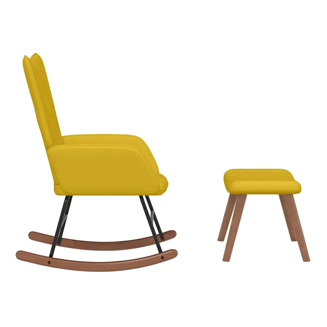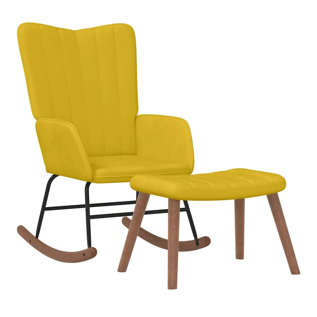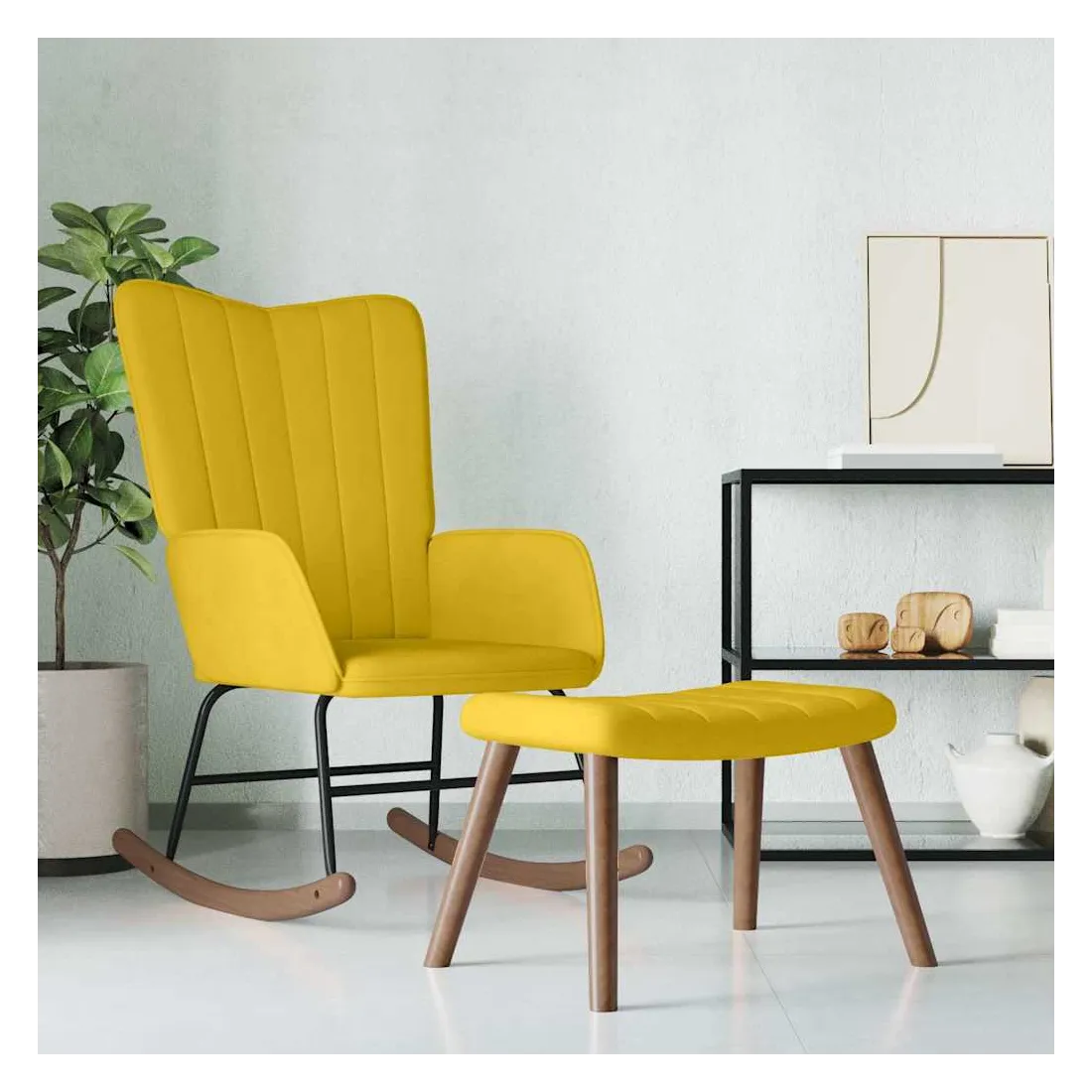 Cette chaise à bascule avec tabouret est un excellent supplément à votre décor existant. Ce fauteuil, avec quelques lignes sur son dossier, est esthétique. Grâce à sa mousse rembourrée recouverte de velours doux au toucher, vous pourrez profiter d'un confort optimal pendant votre temps d'assise. Avec la conception de longs rails à bascule, la chaise de relaxation ne basculera pas facilement. Soutenue par un cadre et des pieds en acier, ainsi que par des rails à bascule en bois, la chaise de salon avec repose-pied est stable et durable.