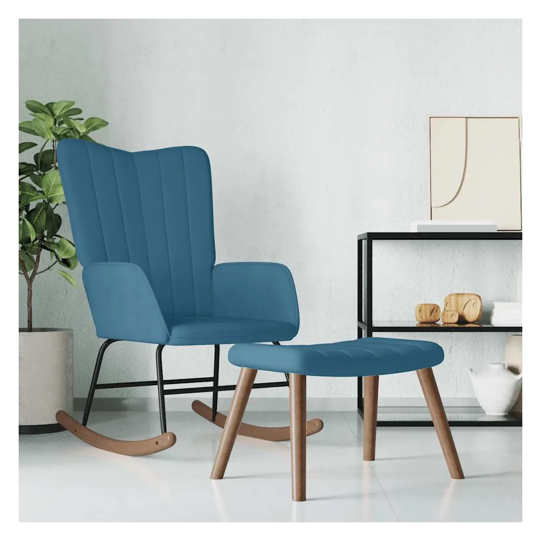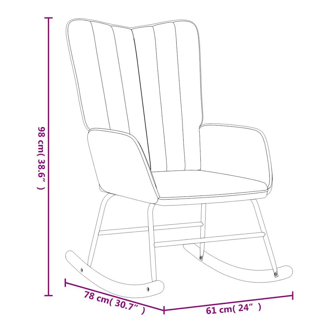 Cette chaise à bascule avec tabouret est un excellent supplément à votre décor existant. Ce fauteuil, avec quelques lignes sur son dossier, est esthétique. Grâce à sa mousse rembourrée recouverte de velours doux au toucher, vous pourrez profiter d'un confort optimal pendant votre temps d'assise. Avec la conception de longs rails à bascule, la chaise de relaxation ne basculera pas facilement. Soutenue par un cadre et des pieds en acier, ainsi que par des rails à bascule en bois, la chaise de salon avec repose-pied est stable et durable.