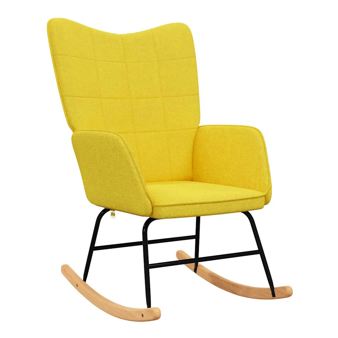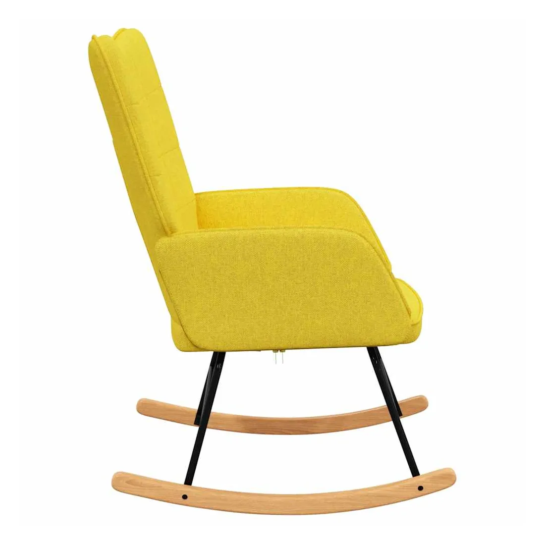 Cette chaise à bascule au design chic et élégant apportera une touche de modernité à votre décoration. Dotée de quelques blocs, cette chaise de relaxation est esthétique. Grâce à sa mousse rembourrée recouverte d'un tissu doux au toucher, vous pourrez profiter d'un confort optimal pendant votre temps d'assise. Avec la conception de longs rails à bascule, le fauteuil ne basculera pas facilement. De plus, soutenue par un cadre et des pieds en acier, ainsi que par des rails à bascule en bois, la chaise de salon est stable et durable.