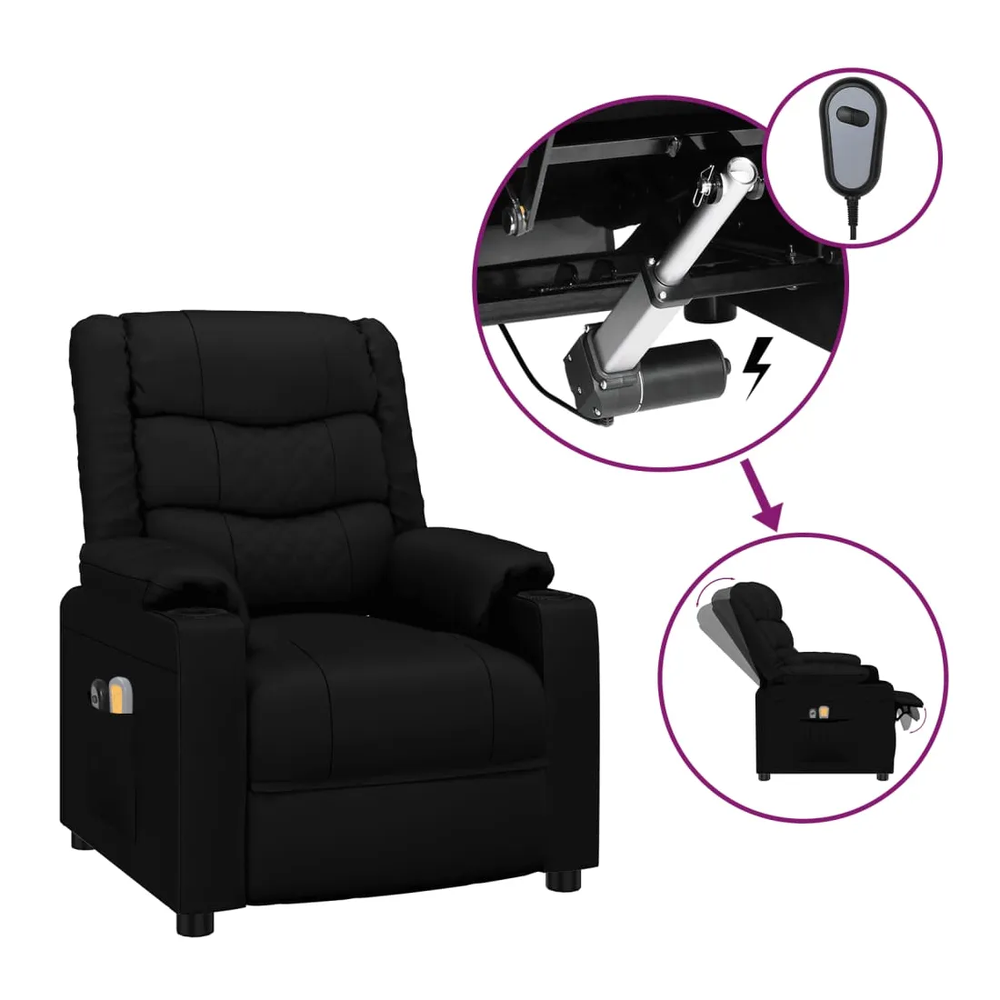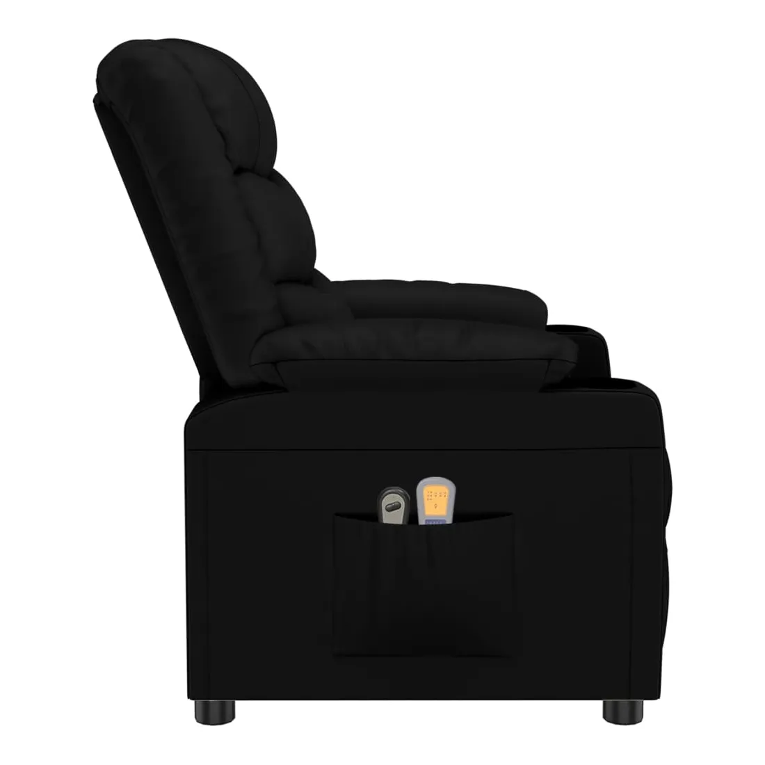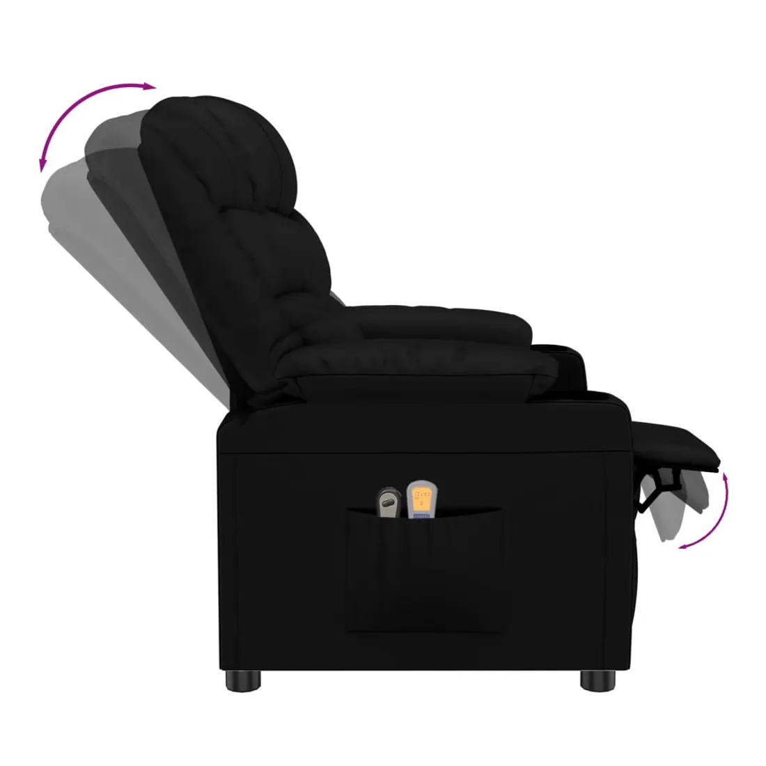 Asseyez-vous et détendez-vous dans ce fauteuil de massage électrique très confortable ! Fonction d'inclinaison électrique : le fauteuil inclinable est équipé d'un moteur électrique pour la fonction d'inclinaison. Il offre 3 positions d'inclinaison et vous pouvez facilement régler le dossier et le repose-pied à l'aide de la commande manuelle à 2 boutons incluse, en fonction de votre confort.Fonction de vibration : les 6 points de massage vous permettent de faire l'expérience d'un massage mieux ciblé. De plus, la télécommande incluse vous permet de choisir différents programmes de massage. La fonction de massage est alimentée par le connecteur USB, mais la source d'alimentation USB 5V certifiée n'est pas incluse.Expérience de siège confortable : le siège, le dossier et les larges accoudoirs rembourrés épais recouverts de similicuir procurent une sensation confortable et chaleureuse, vous faisant vous sentir enlacé lorsque vous êtes assis. Le simili cuir est un matériau très résistant. Il est résistant aux taches, ce qui le rend facile à nettoyer avec un chiffon humide. La surface lisse donne également un aspect luxueux et la beauté du cuir véritable.Cadre solide et stable : le cadre en bois et en métal offre une structure solide et une grande stabilité. Ce fauteuil inclinable est confortable et durable.