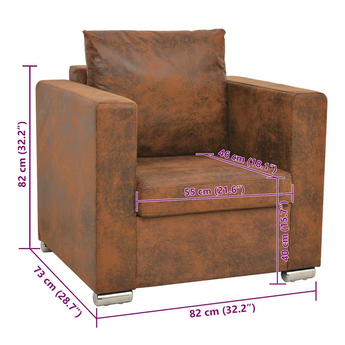 - Hauteur du siège depuis le sol (avec coussins) : 40 cm