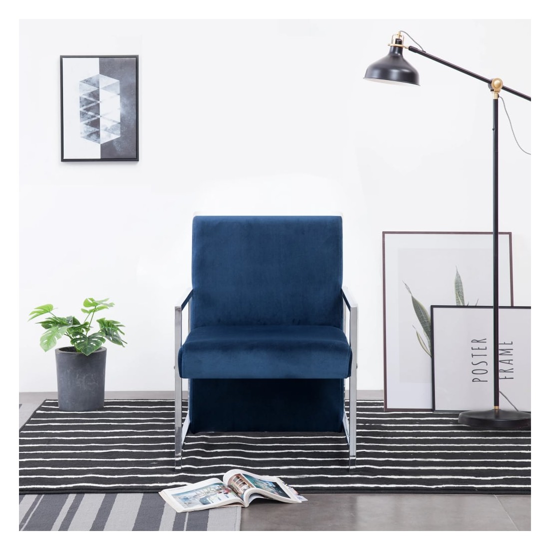 Fauteuil avec pieds chromés Bleu Velours