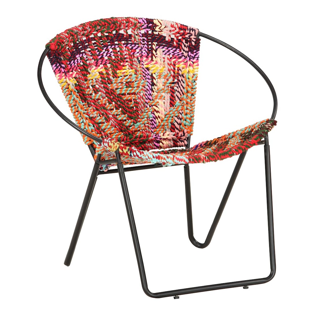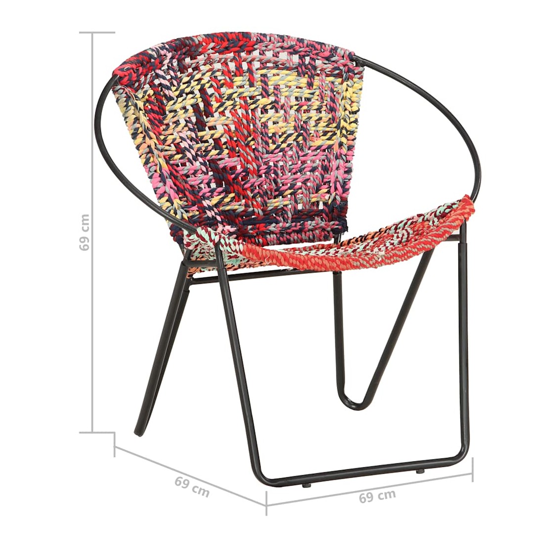 Profitez d'une relaxation complète après votre journée bien remplie avec notre chaise ronde chindi classique. Cette chaise dispose d’un design ergonomique pour assurer un soutien suffisant à votre corps et de fournir le plus grand confort. Le rembourrage en coton rayé tissé à la main est doux au toucher, et le cadre en acier solide avec revêtement en poudre rend la chaise stable. Remarque importante : le tissu peut varier d’une pièce à l’autre, ce qui rend chacune de nos chaises unique. La livraison est également aléatoire.