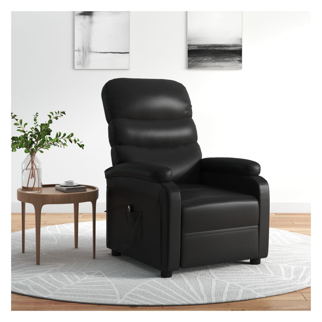 Asseyez-vous et détendez-vous dans ce fauteuil inclinable électrique très confortable ! Fonction d'inclinaison électrique : le fauteuil inclinable est équipé d'un moteur électrique pour la fonction d'inclinaison. Il offre 3 positions d'inclinaison et vous pouvez facilement régler le dossier et le repose-pied à l'aide de la commande manuelle à 2 boutons incluse, en fonction de votre confort.Expérience de siège confortable : le siège, le dossier et les larges accoudoirs rembourrés épais recouverts de similicuir procurent une sensation confortable et chaleureuse, vous faisant vous sentir enlacé lorsque vous êtes assis. Le simili cuir est un matériau très résistant. Il est résistant aux taches, ce qui le rend facile à nettoyer avec un chiffon humide. La surface lisse donne également un aspect luxueux et la beauté du cuir véritable.Cadre solide et stable : le cadre en bois et en métal offre une structure solide et une grande stabilité. Ce fauteuil inclinable est confortable et durable.