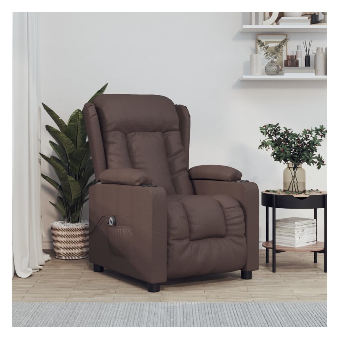 Asseyez-vous et détendez-vous dans ce fauteuil inclinable électrique très confortable ! Fonction d'inclinaison électrique : le fauteuil inclinable est équipé d'un moteur électrique pour la fonction d'inclinaison. Il offre 3 positions d'inclinaison et vous pouvez facilement régler le dossier et le repose-pied à l'aide de la commande manuelle à 2 boutons incluse, en fonction de votre confort.Expérience de siège confortable : le siège, le dossier et les larges accoudoirs rembourrés épais recouverts de similicuir procurent une sensation confortable et chaleureuse, vous faisant vous sentir enlacé lorsque vous êtes assis. Le simili cuir est un matériau très résistant. Il est résistant aux taches, ce qui le rend facile à nettoyer avec un chiffon humide. La surface lisse donne également un aspect luxueux et la beauté du cuir véritable.Cadre solide et stable : le cadre en bois et en métal offre une structure solide et une grande stabilité. Ce fauteuil inclinable est confortable et durable.