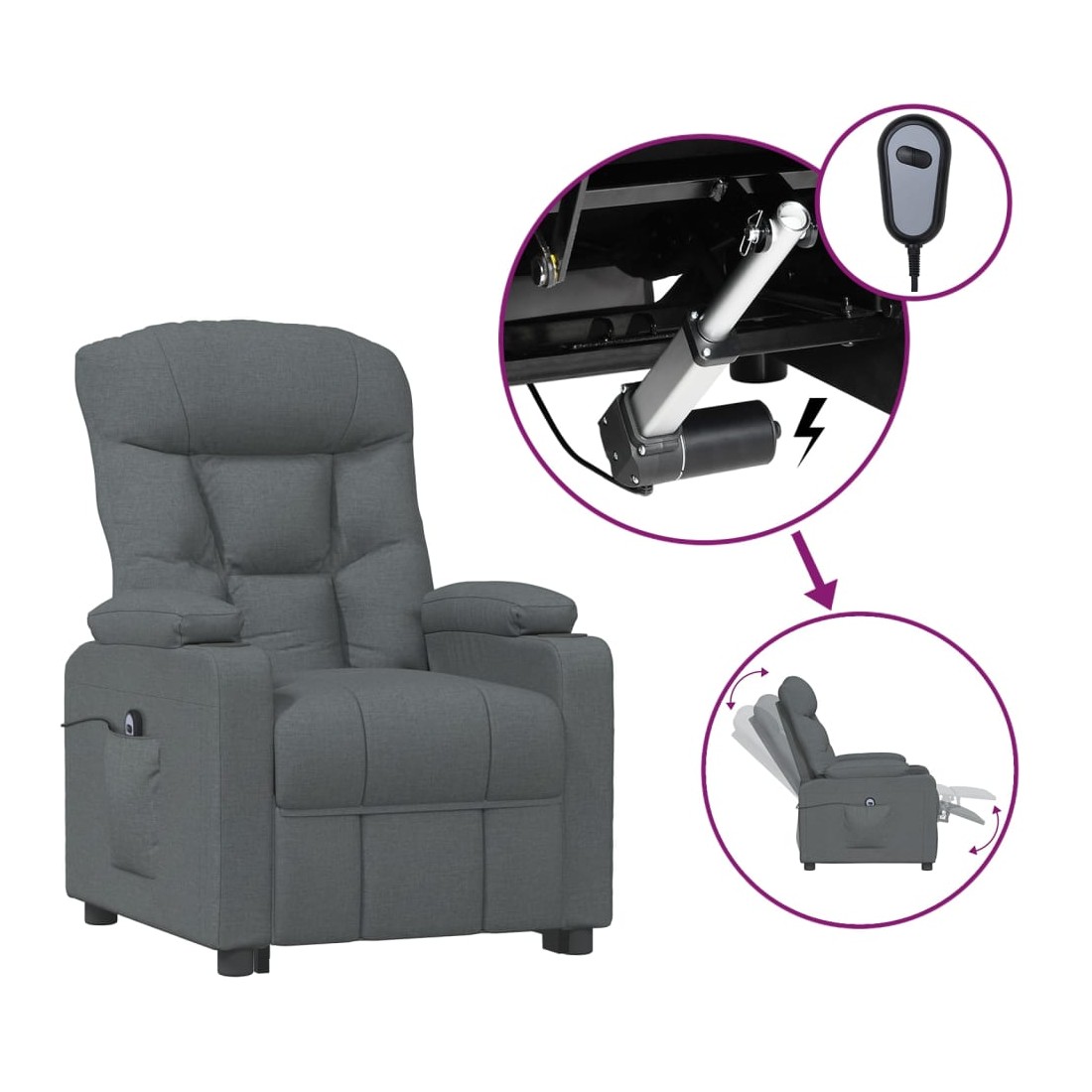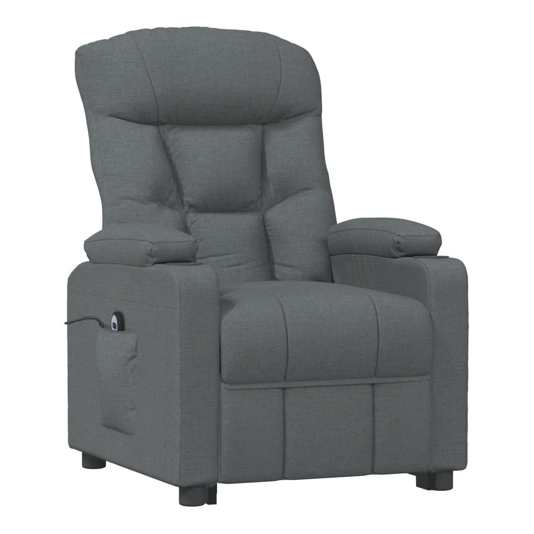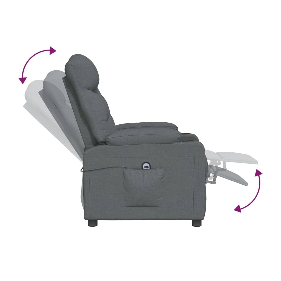 Asseyez-vous et détendez-vous dans ce fauteuil inclinable électrique très confortable ! Fonction d'inclinaison électrique : le fauteuil inclinable est équipé d'un moteur électrique pour la fonction d'inclinaison. Il offre 3 positions d'inclinaison et vous pouvez facilement régler le dossier et le repose-pied à l'aide de la commande manuelle à 2 boutons incluse, en fonction de votre confort.Expérience d'assise confortable : le siège, le dossier et les larges accoudoirs rembourrés épais recouverts de tissu procurent une sensation confortable et chaleureuse, vous permettant de vous sentir enveloppé lorsque vous êtes assis. Le tissu présente un aspect simple et épuré, et est respirant et durable.Cadre solide et stable : le cadre en bois et en métal offre une structure solide et une grande stabilité. Ce fauteuil inclinable est confortable et durable.