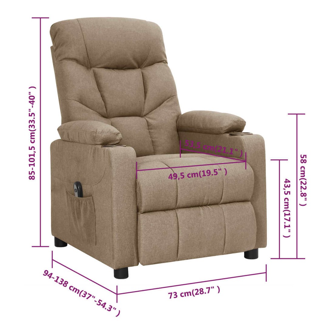 Fauteuil inclinable électrique Taupe Tissu