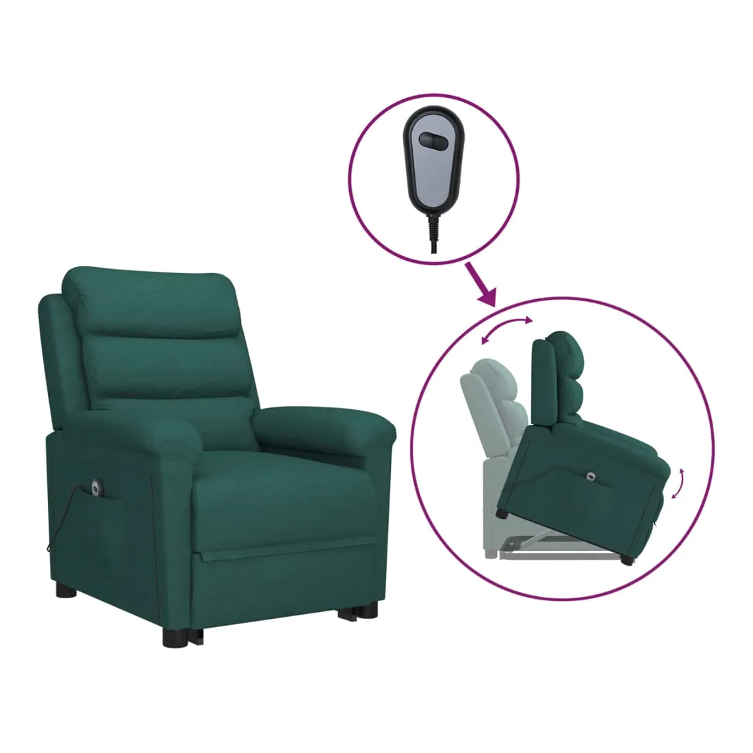 Asseyez-vous et détendez-vous dans ce fauteuil très confortable ! Fonction d'inclinaison manuelle : le fauteuil inclinable est spécialement conçu avec 3 positions d'inclinaison afin que vous puissiez régler manuellement le dossier et le repose-pieds selon votre confort.Fonction de levage électrique : ce fauteuil inclinable pour personnes âgées est équipé d'un moteur électrique pour la fonction de levage. Grâce à la fonction qui pousse toute la chaise vers le haut, vous pouvez facilement vous tenir debout sans stresser votre dos et vos genoux grâce à la commande manuelle à 2 boutons.Expérience d'assise confortable : le siège, le dossier et les larges accoudoirs rembourrés épais recouverts de tissu procurent une sensation confortable et chaleureuse, vous permettant de vous sentir enveloppé lorsque vous êtes assis. Le tissu présente un aspect simple et épuré, et est respirant et durable.Cadre solide et stable : le cadre en bois et en métal offre une structure solide et une grande stabilité. Ce fauteuil inclinable est confortable et durable.