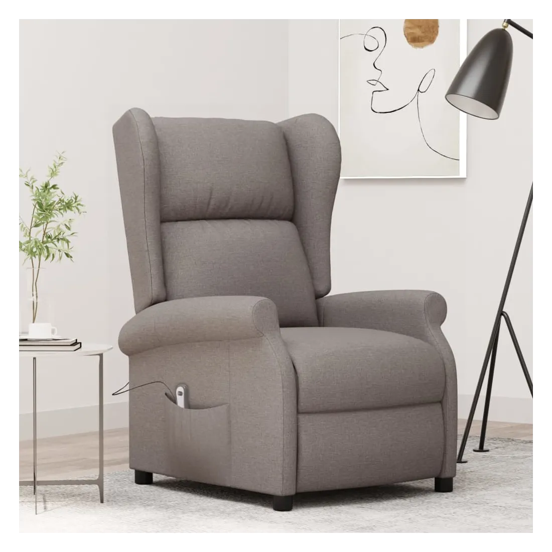 Asseyez-vous et détendez-vous dans ce fauteuil inclinable électrique très confortable ! Fonction d'inclinaison électrique : le fauteuil inclinable est équipé d'un moteur électrique pour la fonction d'inclinaison. Il offre 3 positions d'inclinaison et vous pouvez facilement régler le dossier et le repose-pied à l'aide de la commande manuelle à 2 boutons incluse, en fonction de votre confort.Expérience d'assise confortable : le siège, le dossier et les larges accoudoirs rembourrés épais recouverts de tissu procurent une sensation confortable et chaleureuse, vous permettant de vous sentir enveloppé lorsque vous êtes assis. Le tissu présente un aspect simple et épuré, et est respirant et durable.Cadre solide et stable : le cadre en bois et en métal offre une structure solide et une grande stabilité. Ce fauteuil inclinable est confortable et durable.