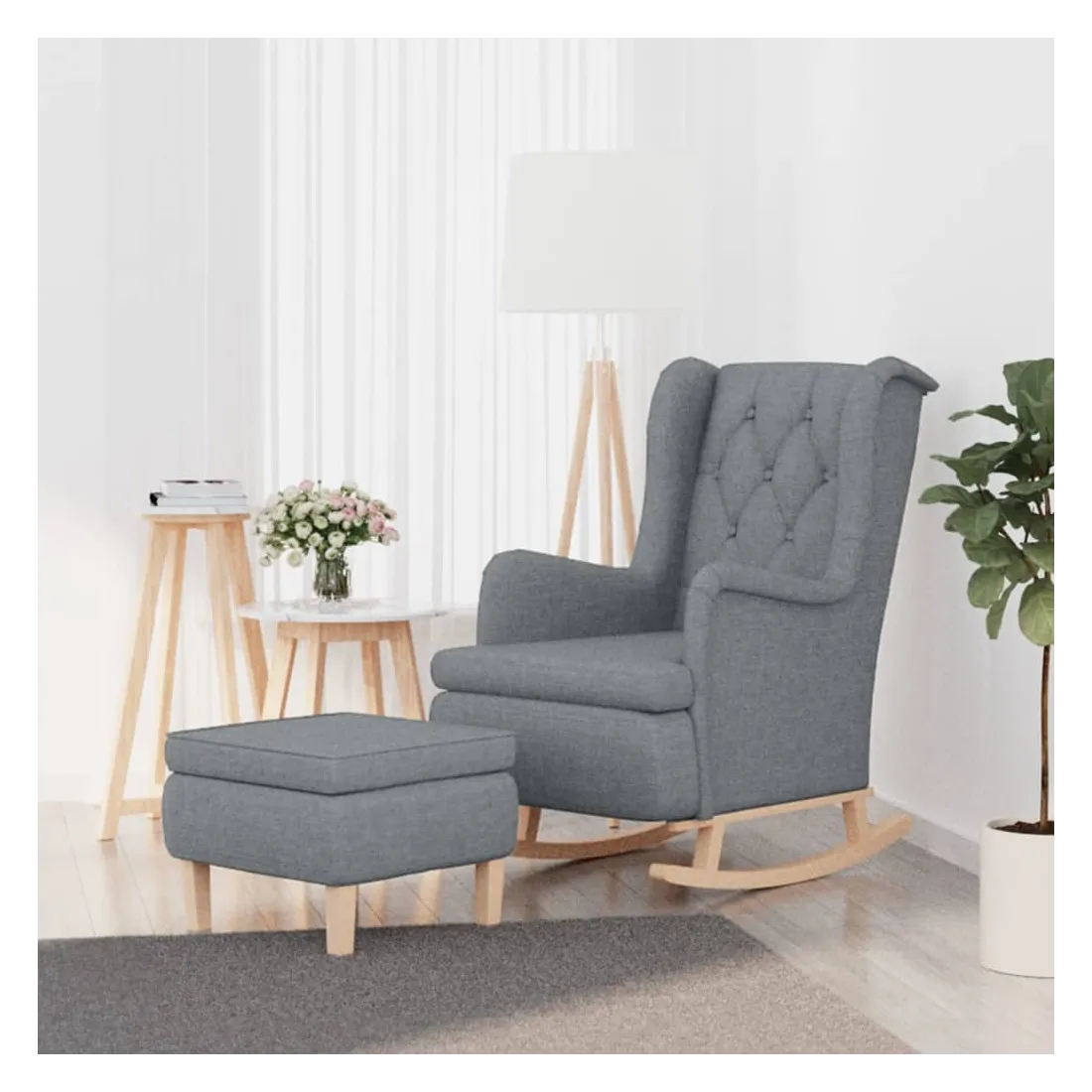 Vous êtes à la recherche d'un fauteuil pour vous détendre après une journée fatigante ? Ce fauteuil confortable avec tabouret est un choix parfait ! Tissu haut de gamme : le fauteuil à bascule et le repose-pied sont fabriqués en tissu, qui présente un aspect simple et épuré, et qui est respirant et durable.Pieds à bascule : détendez-vous en vous asseyant confortablement tout en profitant d'un mouvement de bercement doux et apaisant de cette chaise de détente.Accoudoirs confortables : les accoudoirs de ce fauteuil de salon permettent à vos bras de se reposer confortablement.Tabouret pratique : ce tabouret ottoman convient pour poser vos pieds à la fin de la journée. Vous pouvez également l'utiliser comme siège supplémentaire dans votre salon ou votre entrée. Remarque :Chaque produit est livré avec un manuel de montage dans la boîte pour un montage facile.