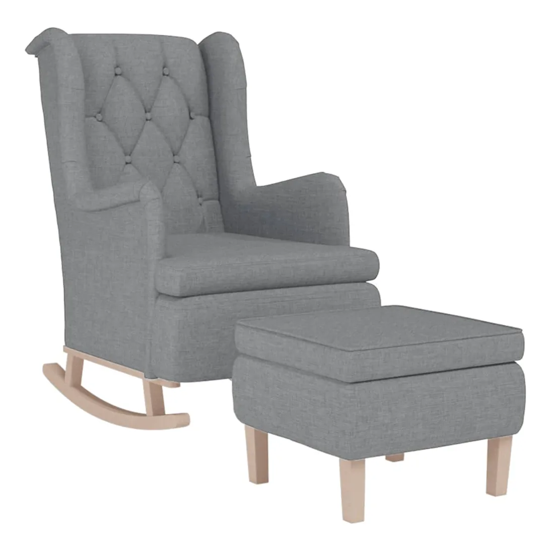 Fauteuil avec pieds à bascule et tabouret Gris clair Tissu