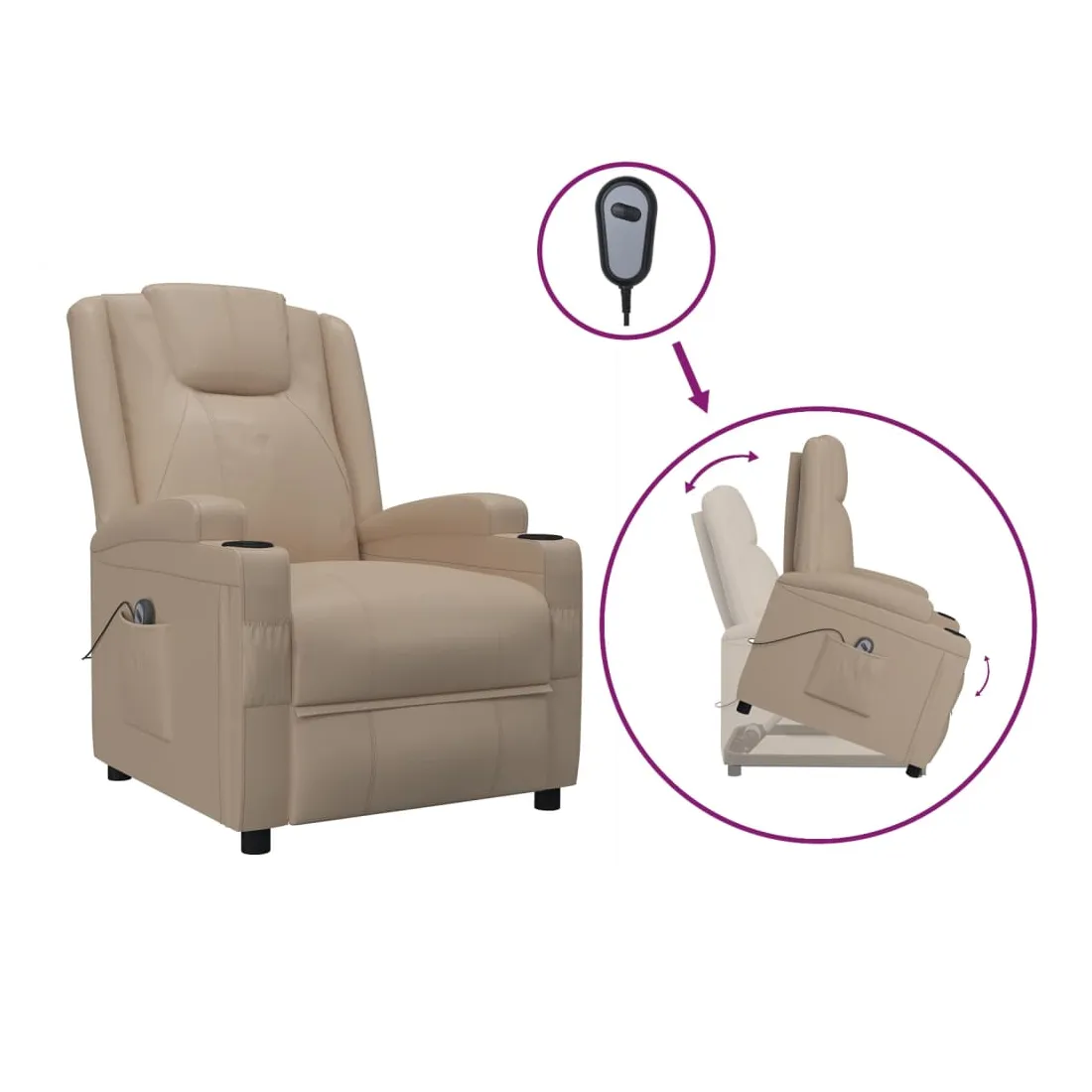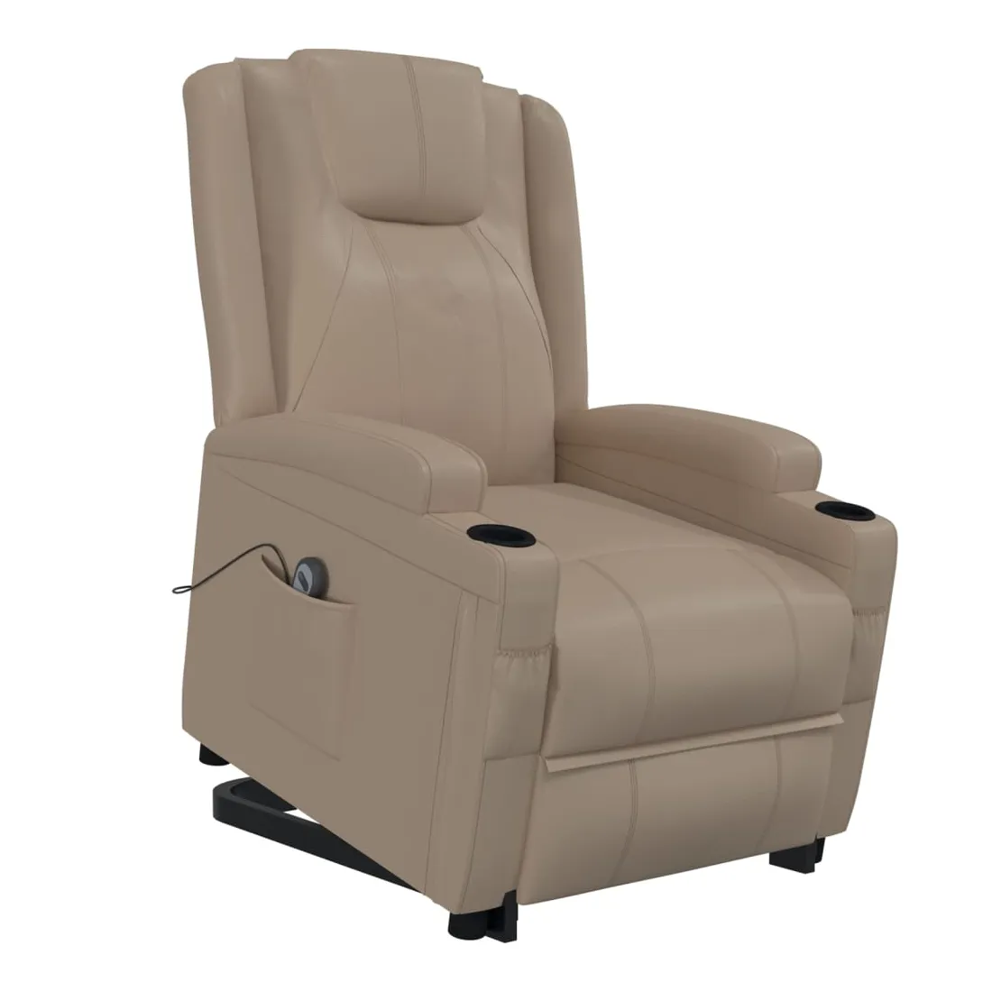 Asseyez-vous et détendez-vous dans ce fauteuil très confortable ! Fonction d'inclinaison manuelle : le fauteuil inclinable est spécialement conçu avec 3 positions d'inclinaison afin que vous puissiez régler manuellement le dossier et le repose-pieds selon votre confort.Fonction de levage électrique : ce fauteuil inclinable pour personnes âgées est équipé d'un moteur électrique pour la fonction de levage. Grâce à la fonction qui pousse toute la chaise vers le haut, vous pouvez facilement vous tenir debout sans stresser votre dos et vos genoux grâce à la commande manuelle à 2 boutons.Expérience de siège confortable : le siège, le dossier et les larges accoudoirs rembourrés épais recouverts de similicuir procurent une sensation confortable et chaleureuse, vous faisant vous sentir enlacé lorsque vous êtes assis. Le simili cuir est un matériau très résistant. Il est résistant aux taches, ce qui le rend facile à nettoyer avec un chiffon humide. La surface lisse donne également un aspect luxueux et la beauté du cuir véritable.Cadre solide et stable : le cadre en bois et en métal offre une structure solide et une grande stabilité. Ce fauteuil inclinable est confortable et durable.