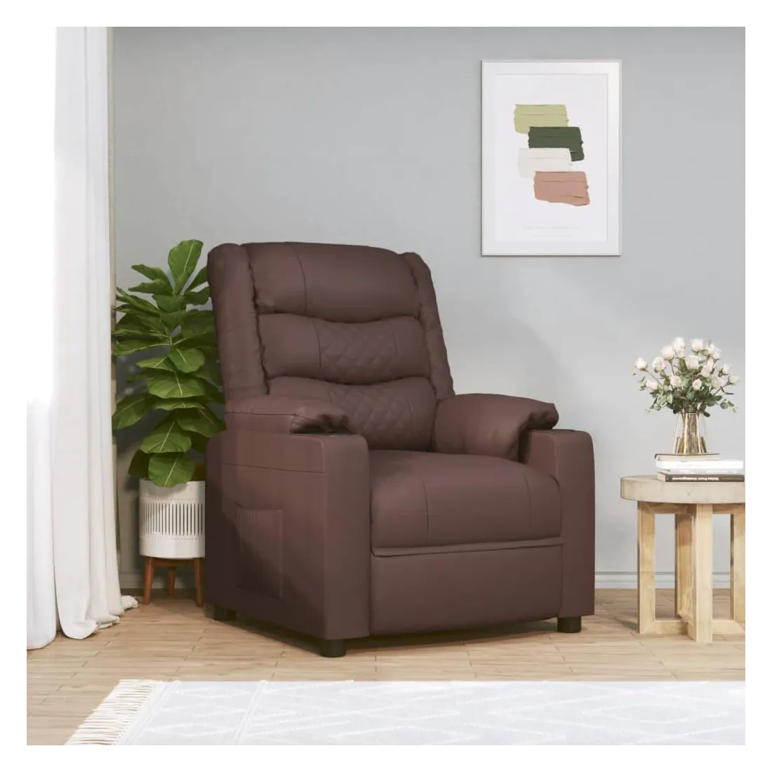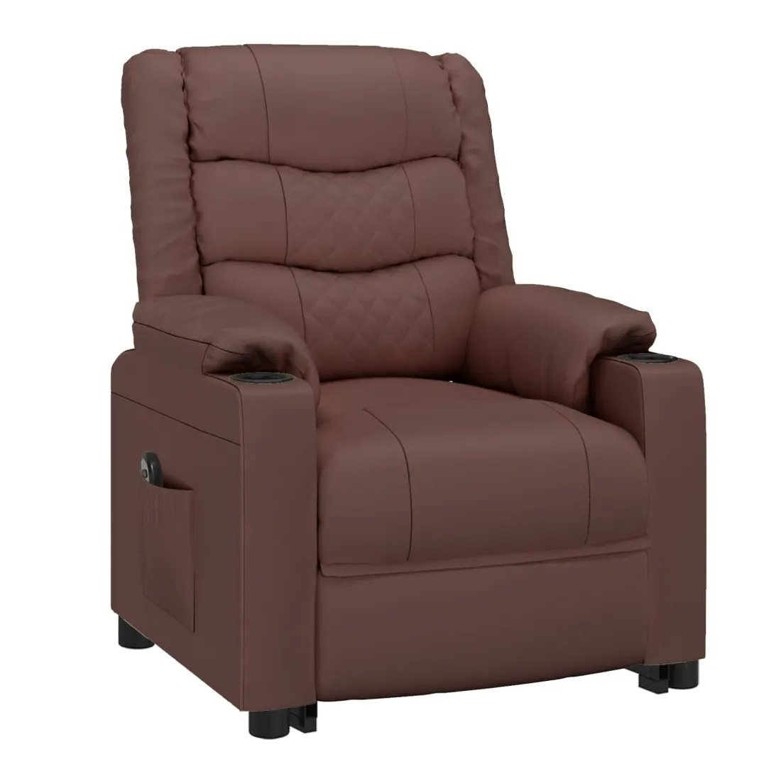 Asseyez-vous et détendez-vous dans ce fauteuil très confortable ! Fonction d'inclinaison manuelle : le fauteuil inclinable est spécialement conçu avec 3 positions d'inclinaison afin que vous puissiez régler manuellement le dossier et le repose-pieds selon votre confort.Fonction de levage électrique : ce fauteuil inclinable pour personnes âgées est équipé d'un moteur électrique pour la fonction de levage. Grâce à la fonction qui pousse toute la chaise vers le haut, vous pouvez facilement vous tenir debout sans stresser votre dos et vos genoux grâce à la commande manuelle à 2 boutons.Expérience de siège confortable : le siège, le dossier et les larges accoudoirs rembourrés épais recouverts de similicuir procurent une sensation confortable et chaleureuse, vous faisant vous sentir enlacé lorsque vous êtes assis. Le simili cuir est un matériau très résistant. Il est résistant aux taches, ce qui le rend facile à nettoyer avec un chiffon humide. La surface lisse donne également un aspect luxueux et la beauté du cuir véritable.Cadre solide et stable : le cadre en bois et en métal offre une structure solide et une grande stabilité. Ce fauteuil inclinable est confortable et durable.