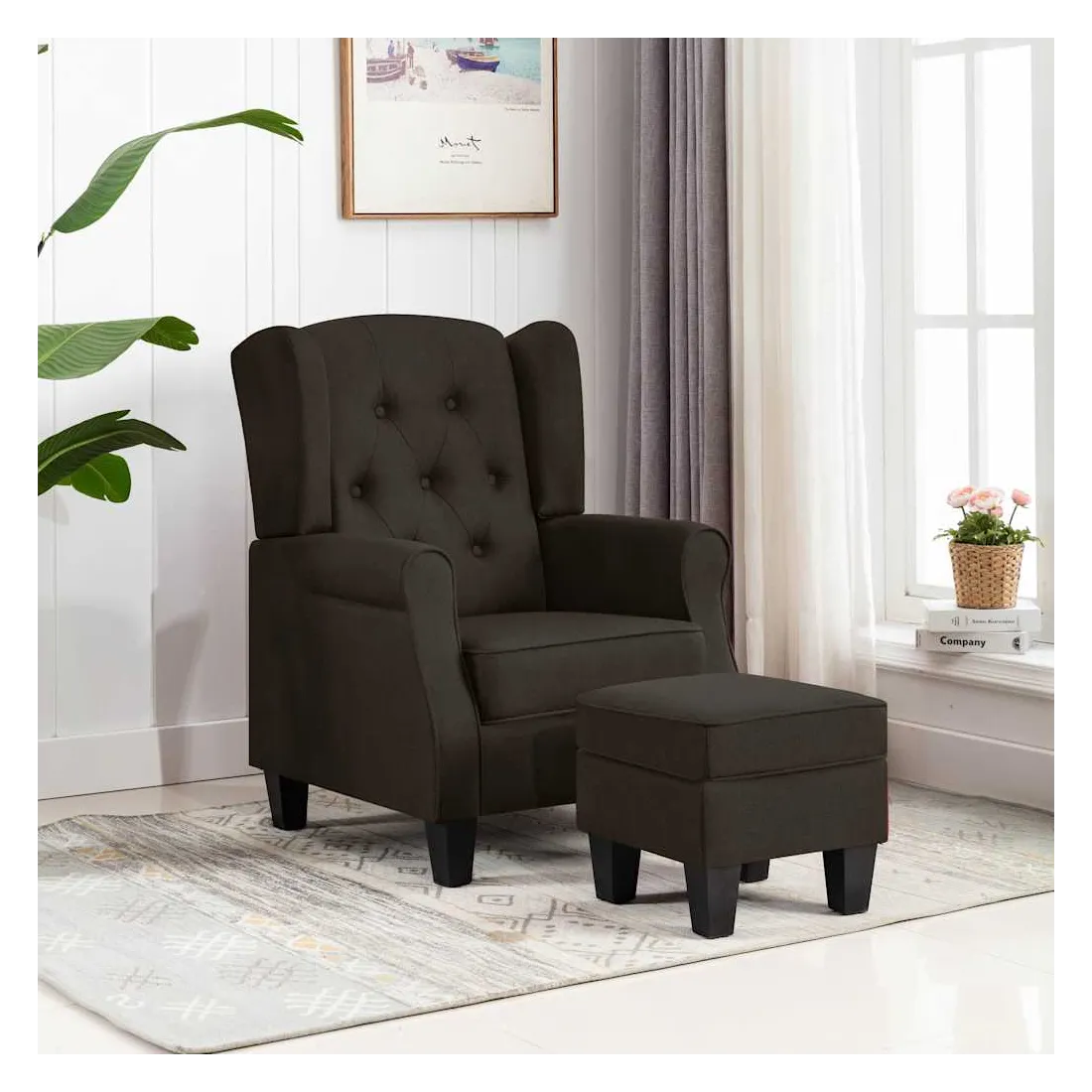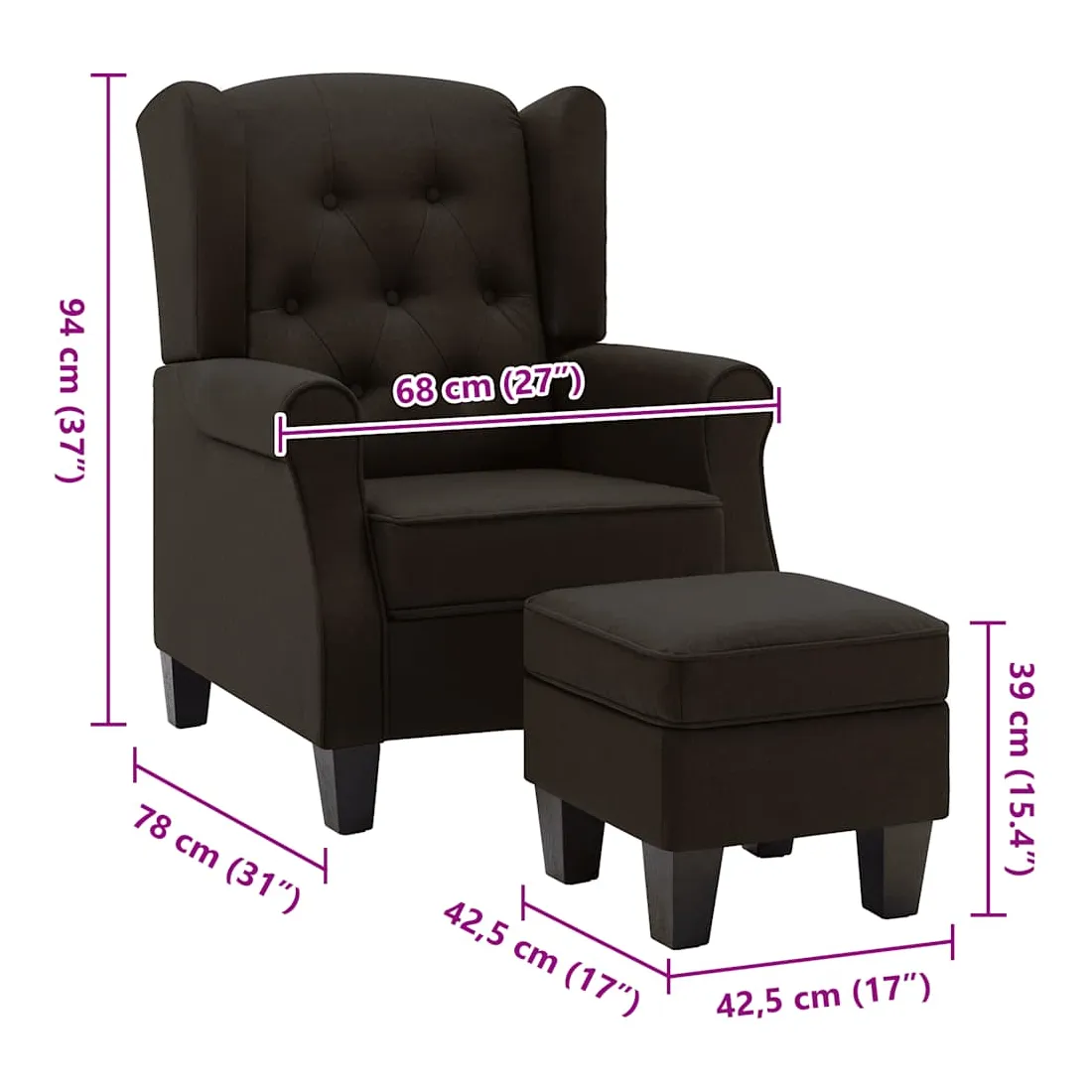 Fauteuil avec repose-pied Marron foncé Tissu