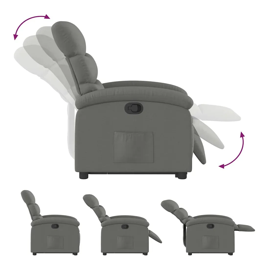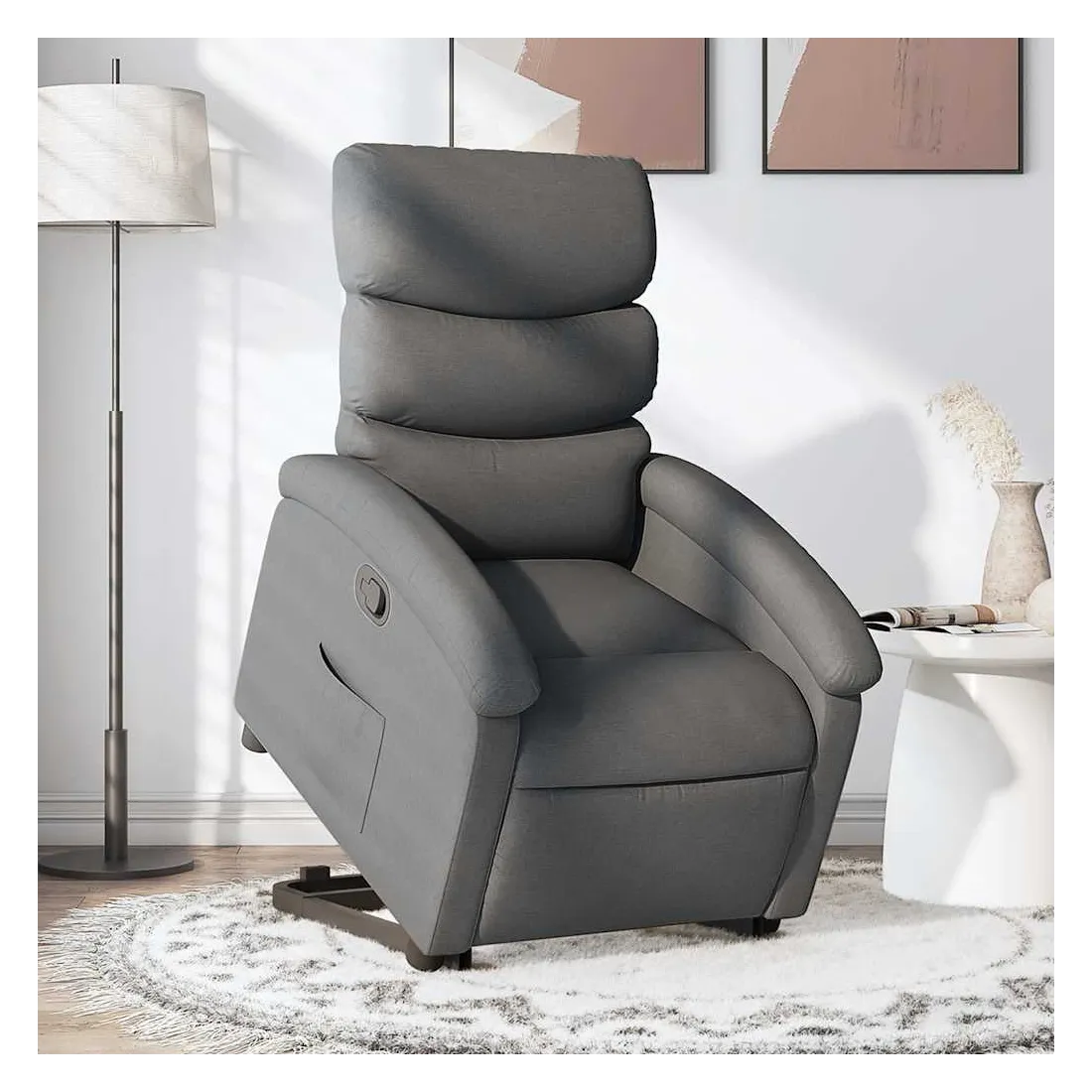 Asseyez-vous et détendez-vous dans ce fauteuil inclinable très confortable ! Fonction de levage électrique : ce fauteuil inclinable pour personnes âgées est équipé d'un moteur électrique pour la fonction de levage. Grâce à la fonction qui pousse toute la chaise vers le haut, vous pouvez facilement vous tenir debout sans stresser votre dos et vos genoux en appuyant simplement sur le bouton.Fonction d'inclinaison manuelle : ce fauteuil inclinable est doté d'une poignée du côté droit. Vous pouvez régler manuellement le repose-pieds et le dossier dans n'importe quelle position selon votre confort en tirant simplement sur la poignée. Cette fonction permet une inclinaison maximale de 135 degrés. De plus, le dossier peut revenir rapidement à sa position d'origine en tirant simplement sur la poignée.Expérience d'assise confortable : le siège, le dossier et les larges accoudoirs bien rembourrés recouverts de tissu procurent une sensation confortable et chaleureuse, vous permettant de vous sentir enveloppé lorsque vous êtes assis. Le tissu présente un aspect simple et épuré et est respirant et durable.Poche latérale pratique : ce fauteuil est doté d'une poche latérale pour vous permettre de garder vos objets essentiels à portée de main.Cadre solide et stable : le cadre en bois et en métal offre une structure solide et une grande stabilité. Ce fauteuil inclinable est confortable et durable.